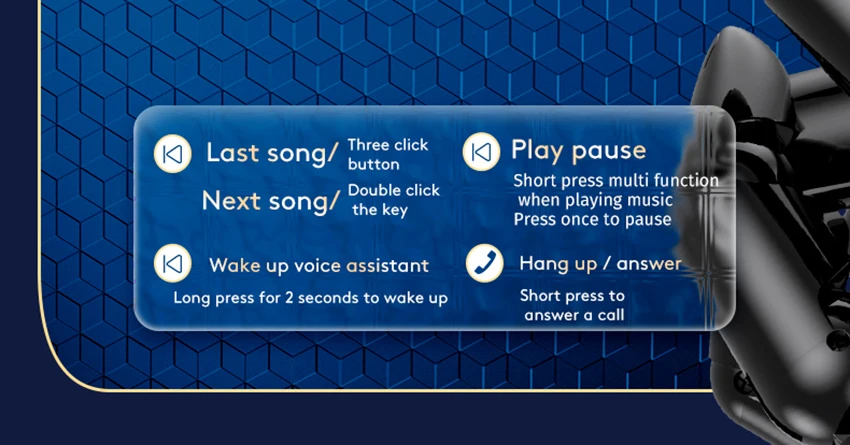 Botón multifunción único para encender/apagar, cambiar canciones, cambiar idiomas, contestar/rechazar llamadas.