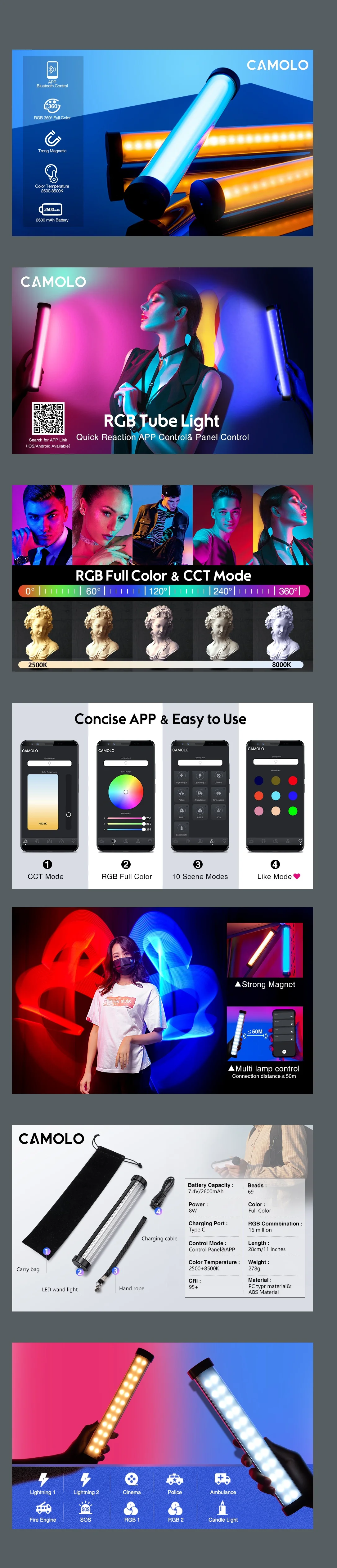Comprar Varita de luz de vídeo Camolo Pro Rgb 2500K-8500K - Soporte magnético y controlado por aplicación Cct/tlci96 para filmación cinematográfica y Youtube