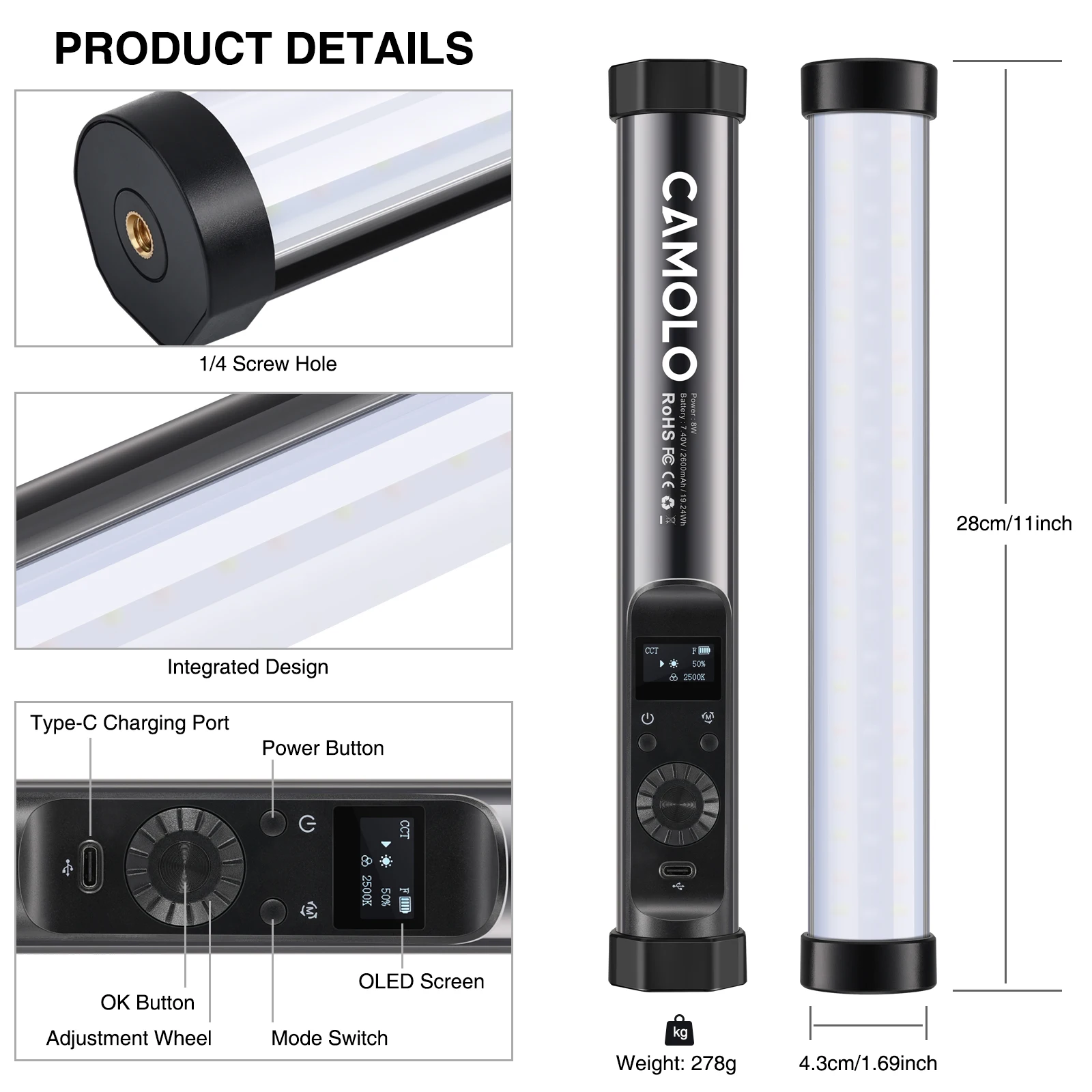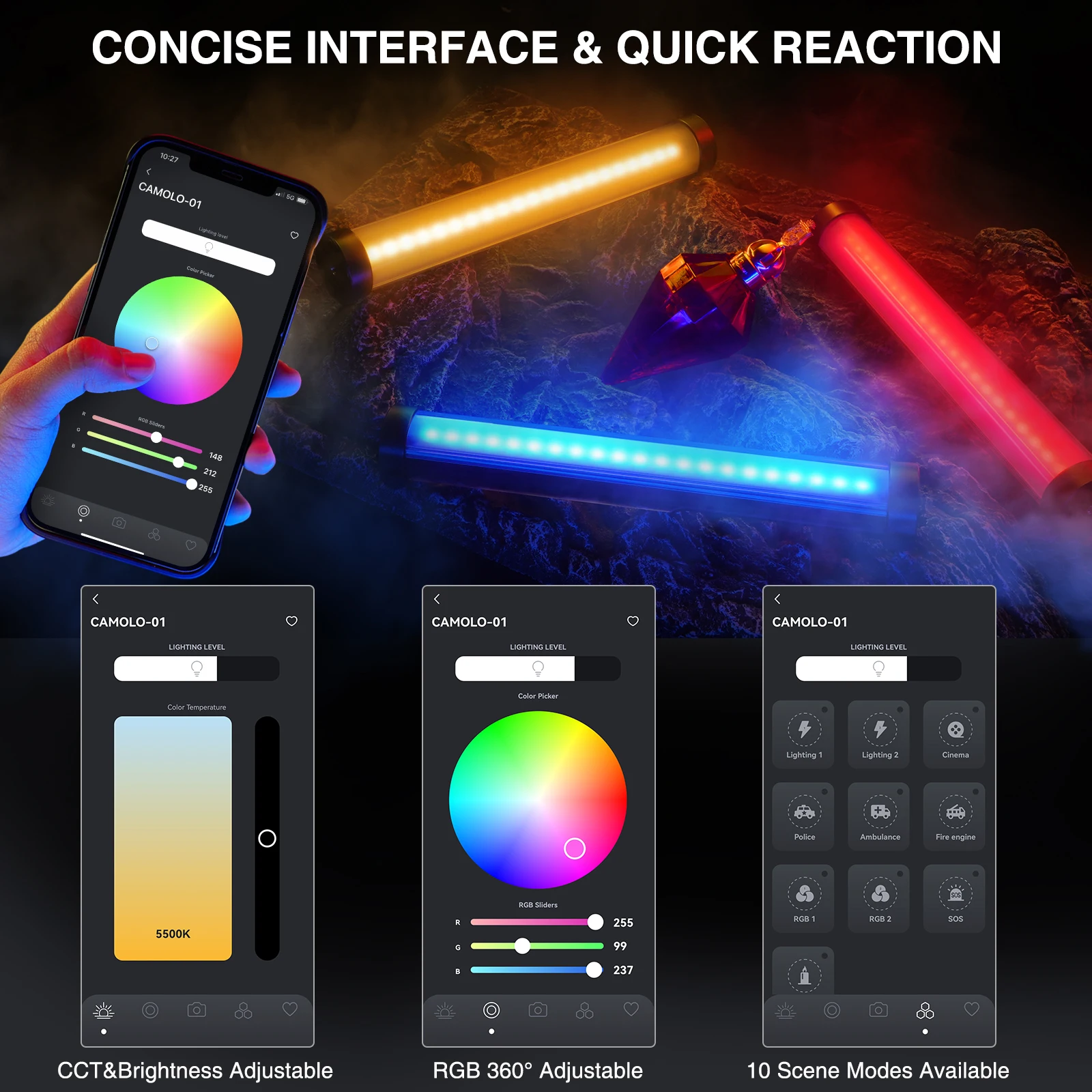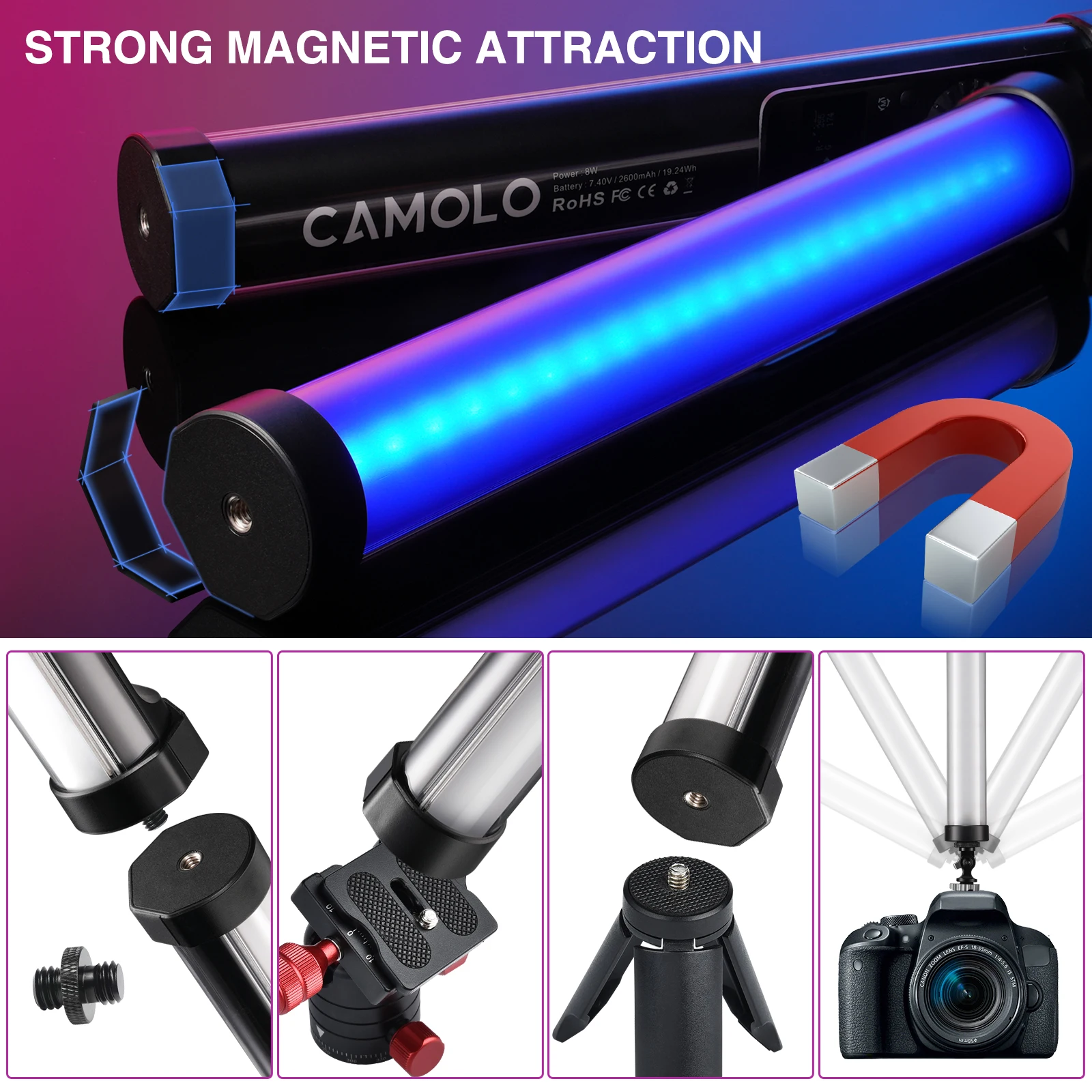 Comprar Varita de luz de vídeo Camolo Pro Rgb 2500K-8500K - Soporte magnético y controlado por aplicación Cct/tlci96 para filmación cinematográfica y Youtube