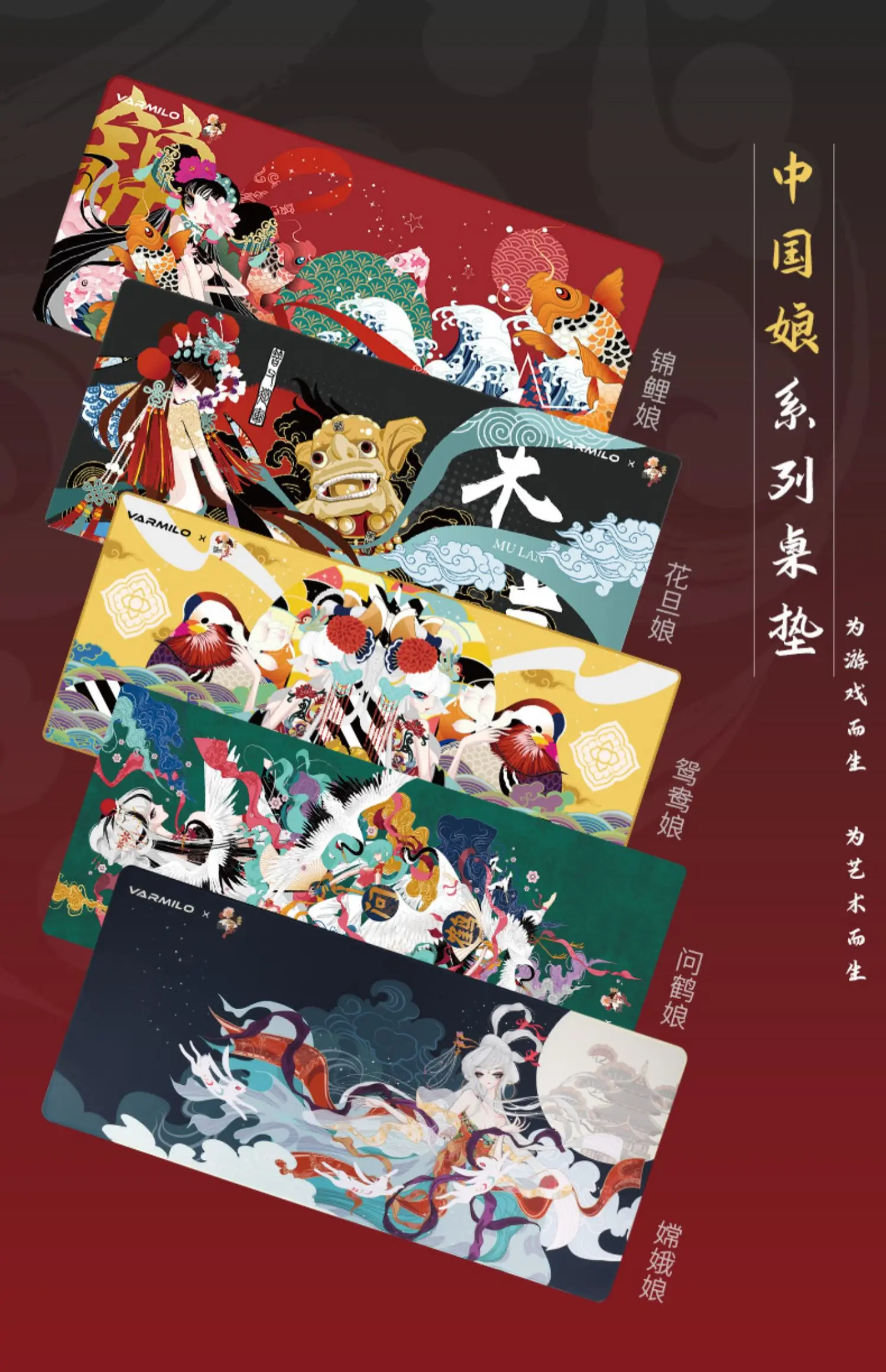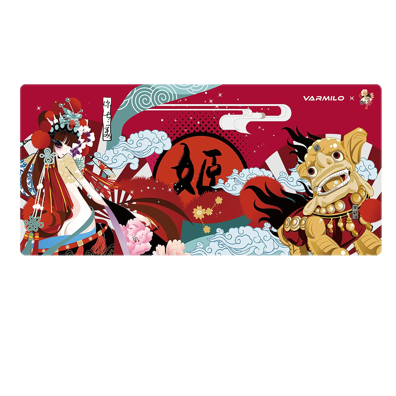 Alfombrilla de ratón Varmilo Original Mulan Koi Lovebird Beijing Opera 35,4 x 15,7 pulgadas Alfombrilla para ratones Mause Teclado Tablet Tamaño XL Costura PC Gamer
