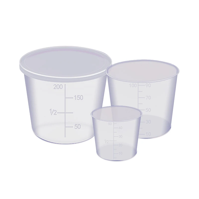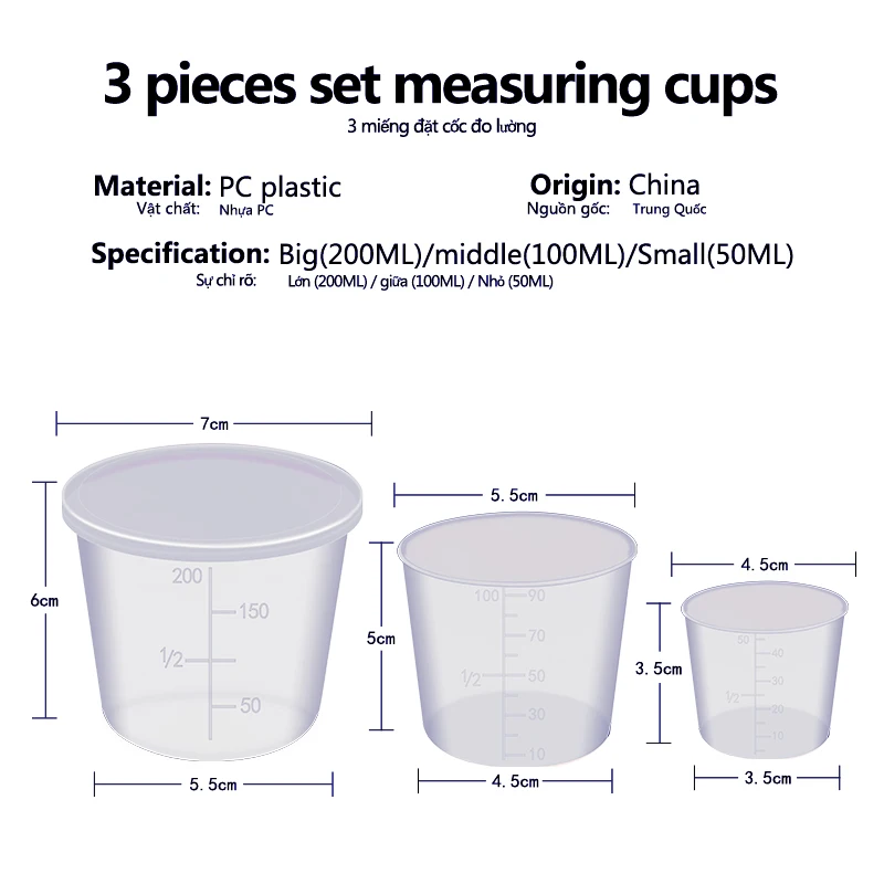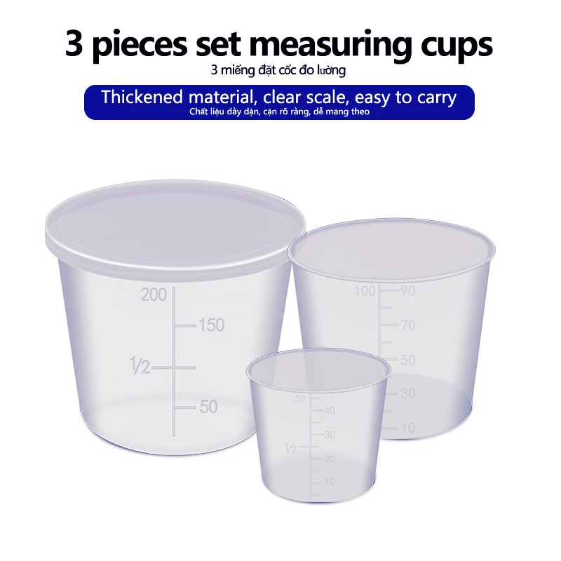 Comprar Vasos medidores de plástico con cubierta para cebo de pesca, accesorios de equipo de medida para agua dulce, 150/90/40ml, 3 unids/lote