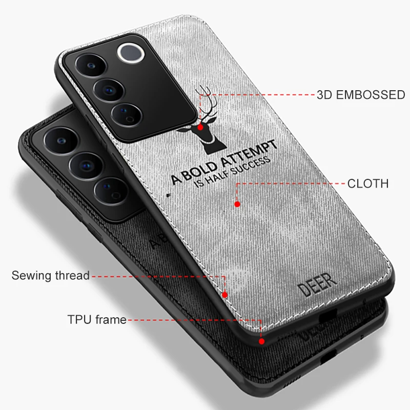 Vavo V27e funda de tela con patrón de ciervo, funda suave para Vivo V27 Pro VivoV27 V27Pro VivoV27e V 27 E, Fundas de protección de lente completa