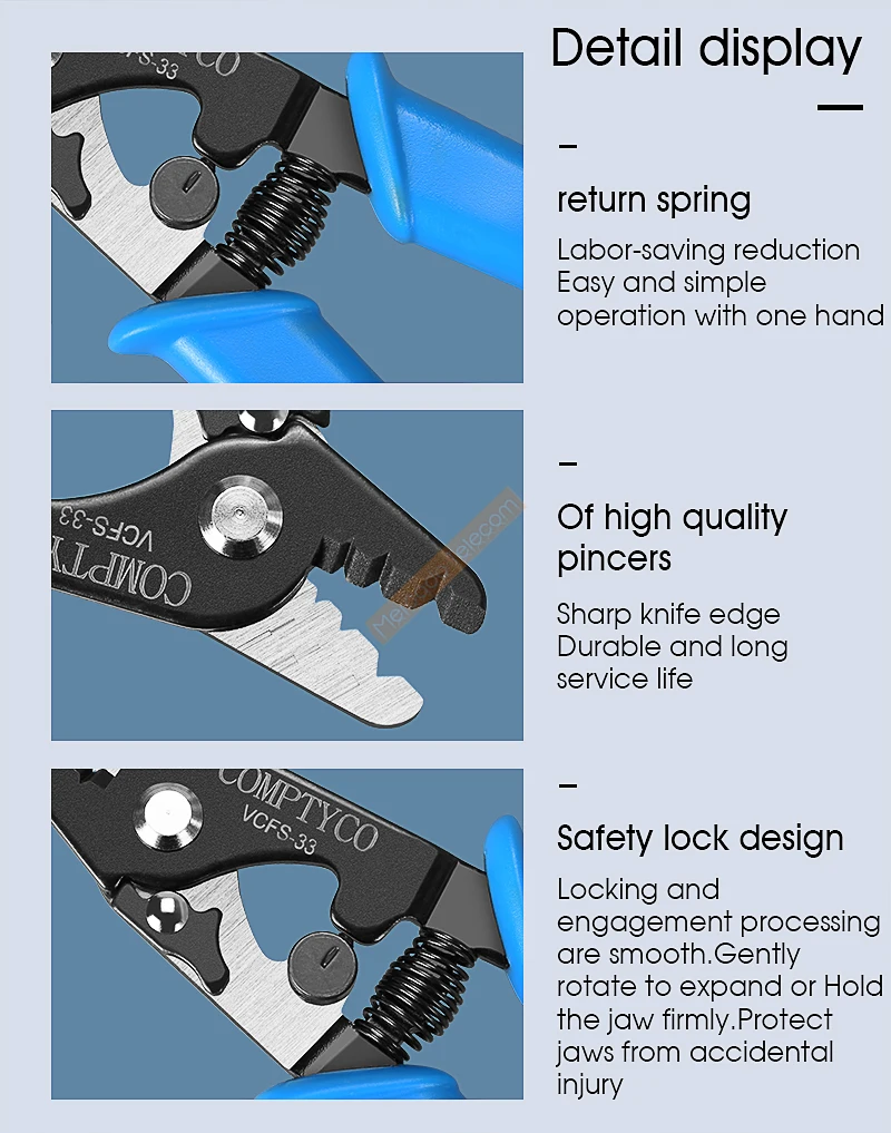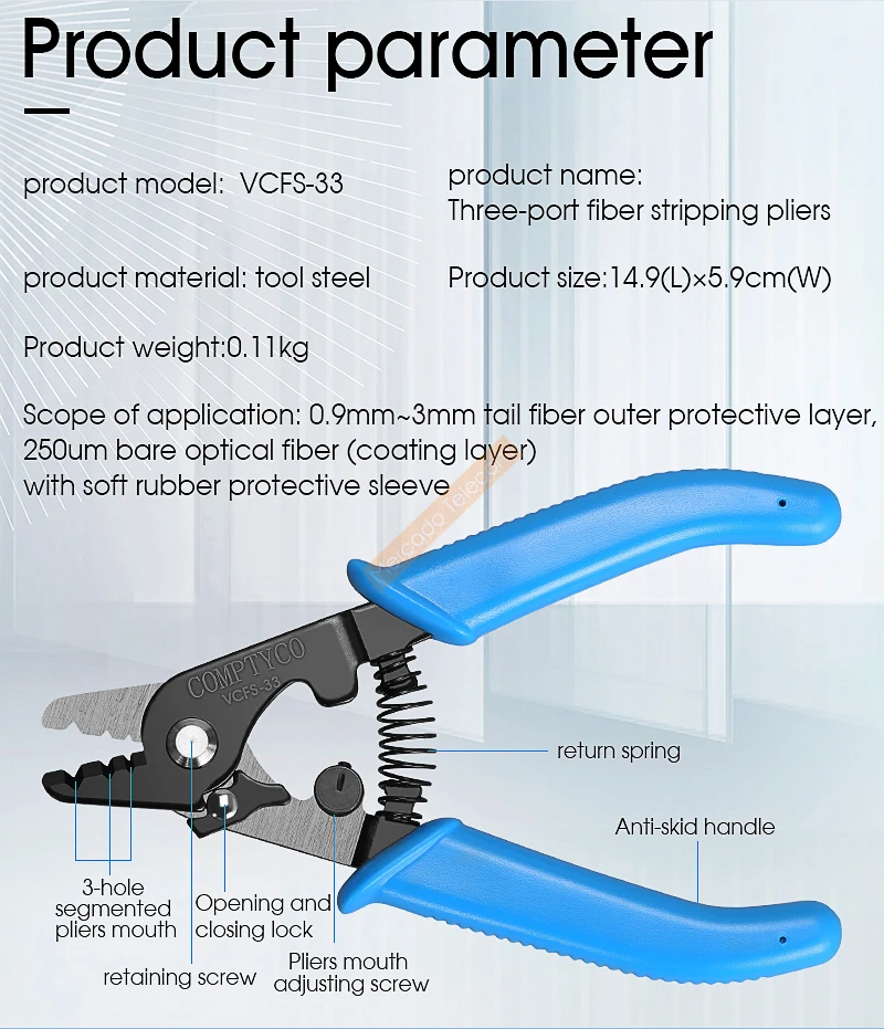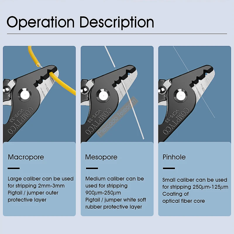 Comprar VCFS-33 Pelacables de fibra óptica, alicates de tres puertos, pelacables para herramientas FTTH, herramienta de pelado óptico