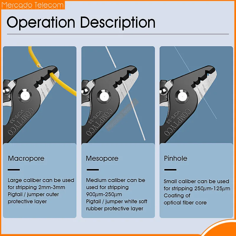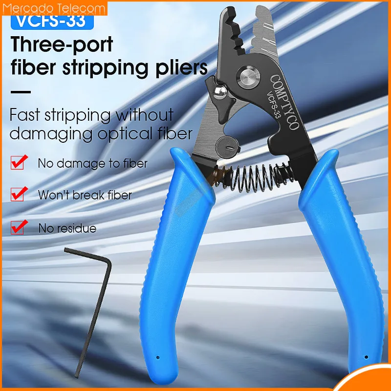 Comprar VCFS-33 Pelacables de fibra óptica, alicates de tres puertos, pelacables para herramientas FTTH, herramienta de pelado óptico