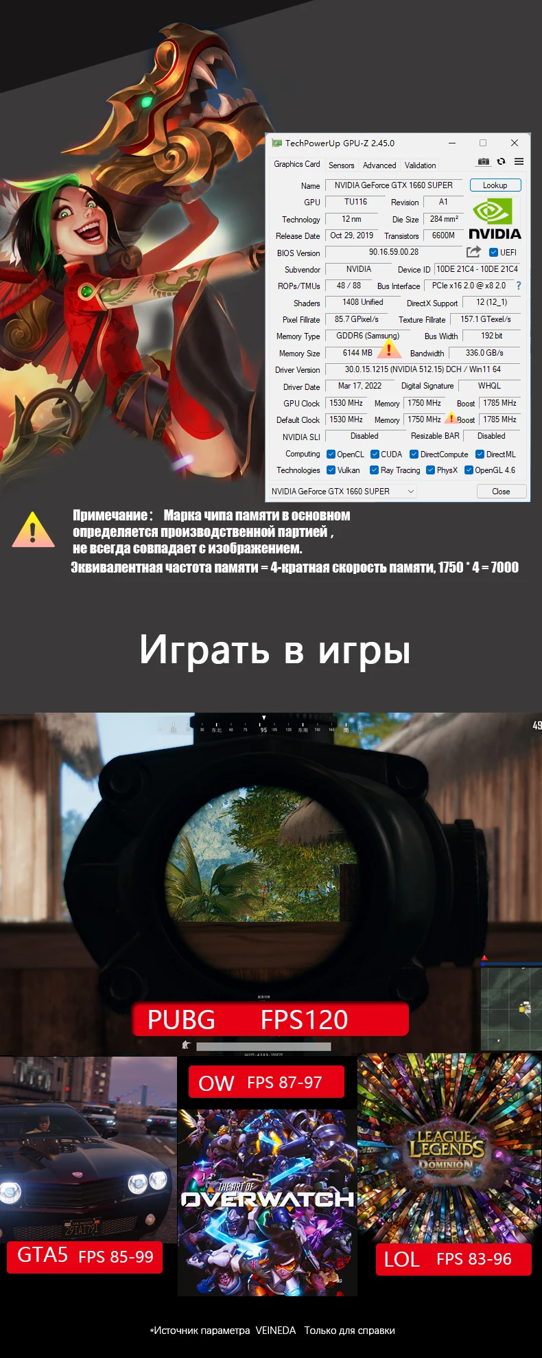 Comprar VEINEDA gtx1660 super 6gb tarjetas gráficas GPU GDDR6 192Bit tarjetas de Video GPU placa base de video