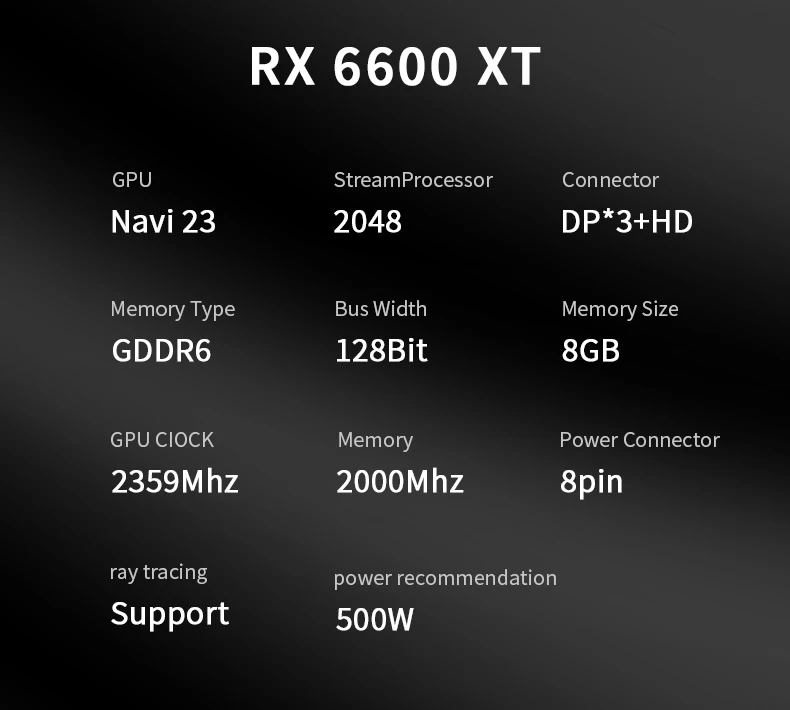 VEINEDA-Tarjeta de vídeo RX6600XT de 8GB, GPU, GDDR6, RX 6600XT de 128 bits, 8G, compatible con CPU de escritorio, placa de vídeo