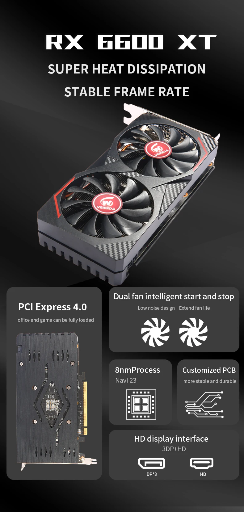 Comprar VEINEDA-tarjeta de vídeo RX6600XT de 8GB, GPU GDDR6, 128 bits, rx 6600XT, tarjeta gráfica de 8G, compatible con CPU de escritorio