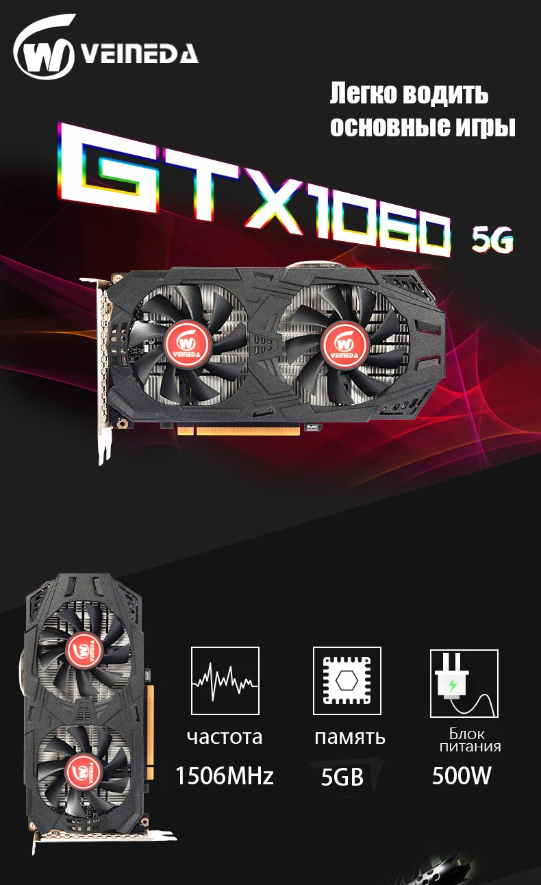 Comprar VEINEDA-tarjetas gráficas 1060 de 5gb, tarjeta de vídeo GDDR5 de 1506MHz, 192Bit, para tarjetas nVIDIA, fuerte que las tarjetas gtx960 reacondicionadas de 4gb