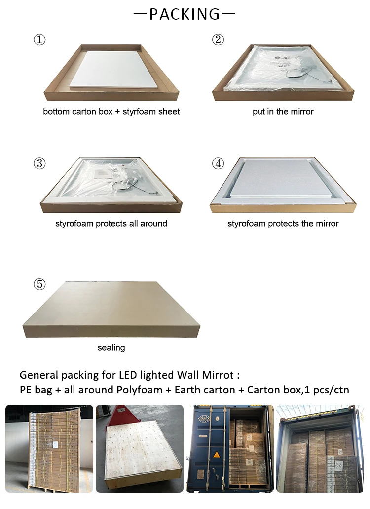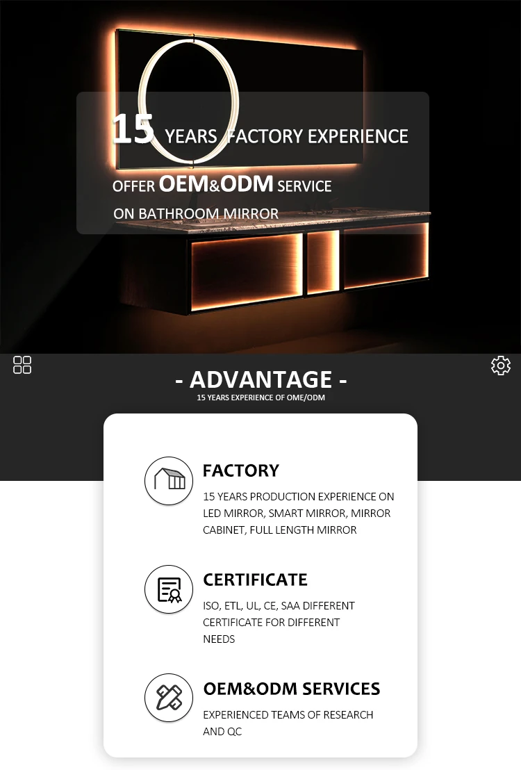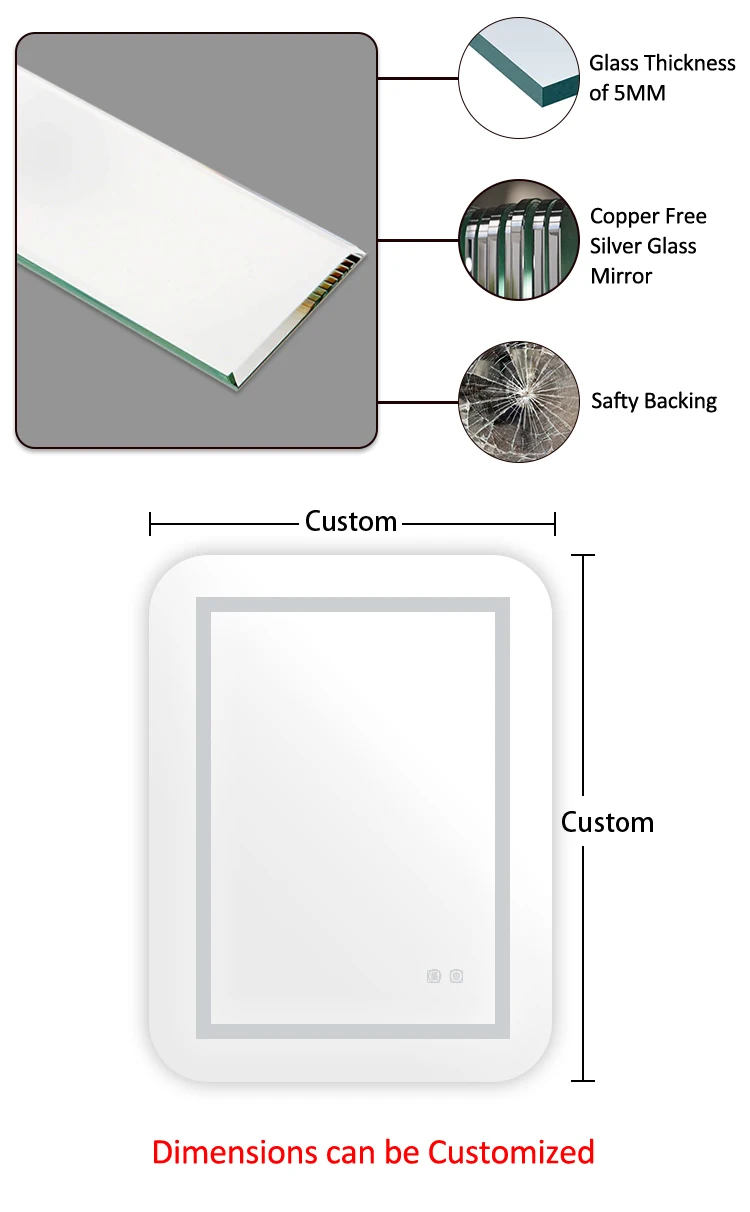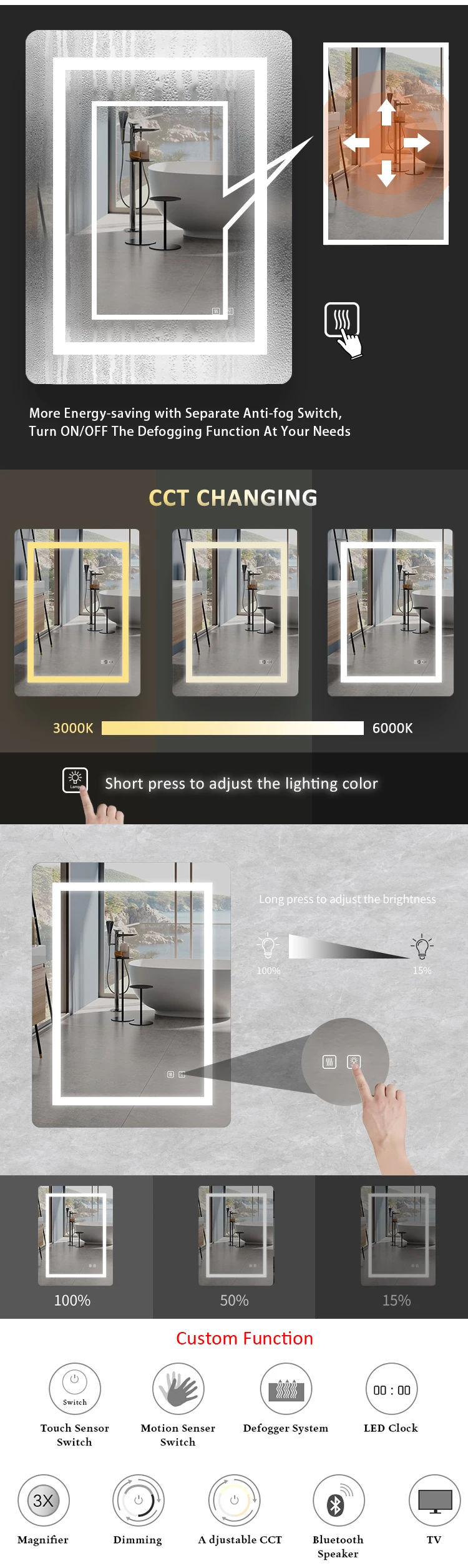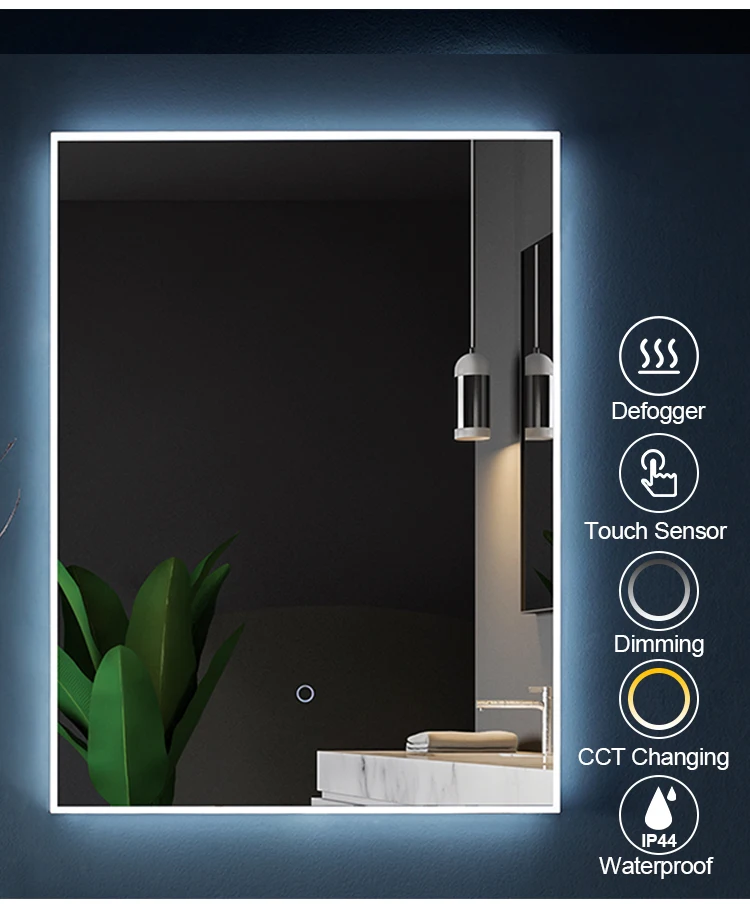 Nombre del productoVenta caliente Rectángulo Hotel Baño de lujo Espejo LED Espejo de baño LED Certificado UL Equipo técnico de servicio posventa en EE. UU.