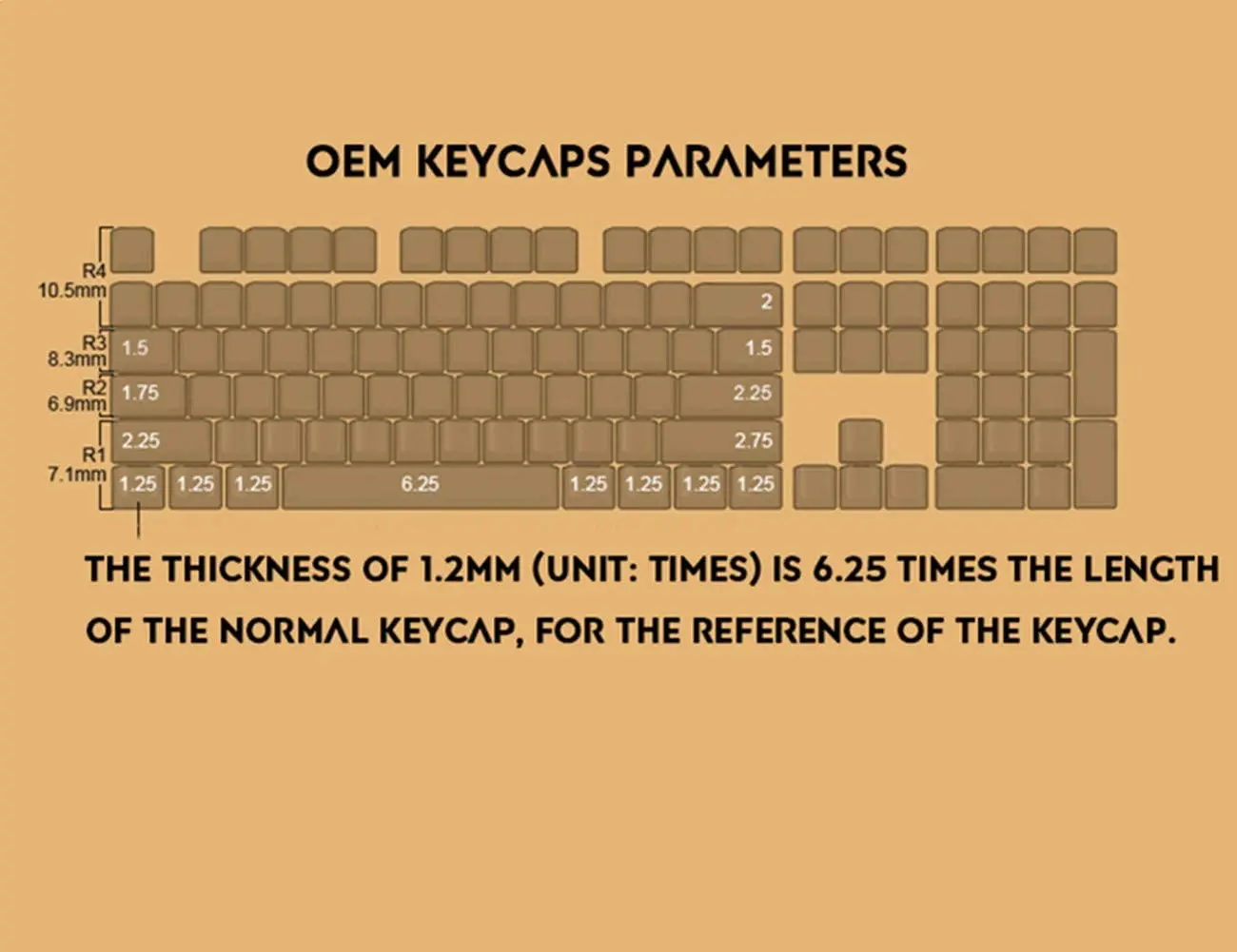 61 keys: This keycap set contains 61 PBT OEM outline keycaps, which is an ideal choice for your DIY mechanical keyboard.