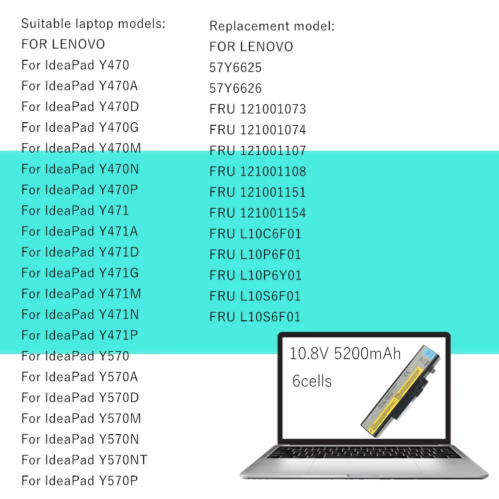 Comprar Venta al por mayor batería del ordenador portátil para Lenovo IdeaPad Y470 Y470A Y470D Y470G Y470M Y470N Y470P L10P6F01 L10P6Y01 L10S6F01 L10S6F01