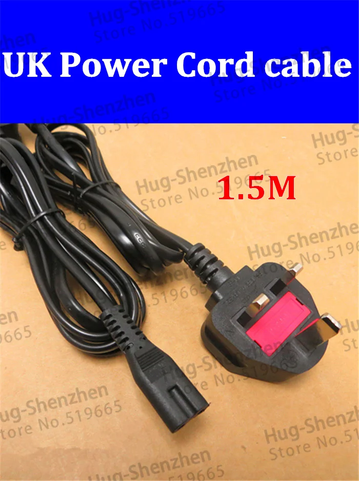 Comprar Venta caliente 5 unids/lote 1,5 M Cable de alimentación de Cable de enchufe de Reino Unido 2-Punta de Cable de alimentación del adaptador de la computadora portátil de alta calidad con fusible 3A