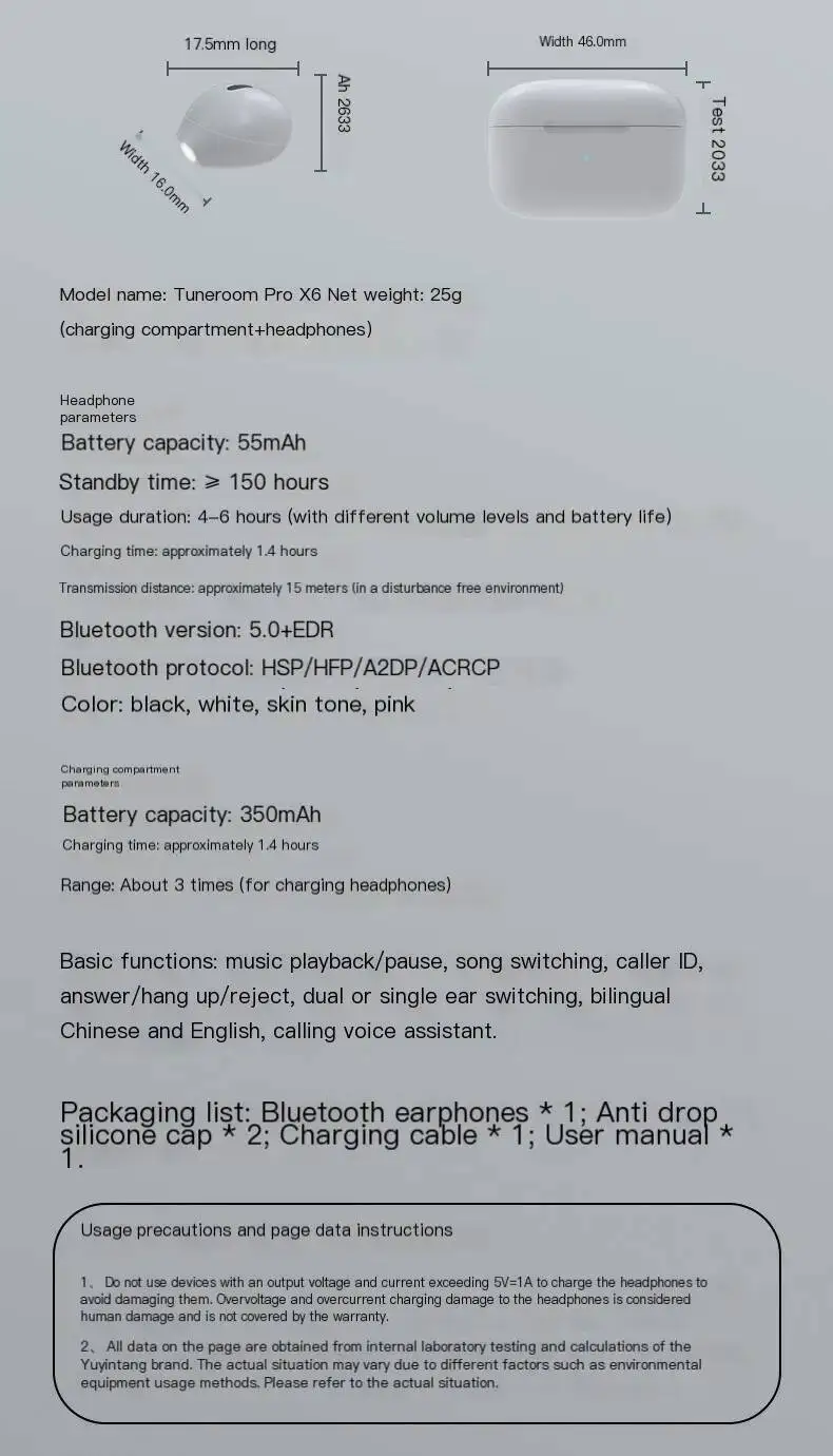 Tiempo de trabajo de los auriculares: 4-5 horas