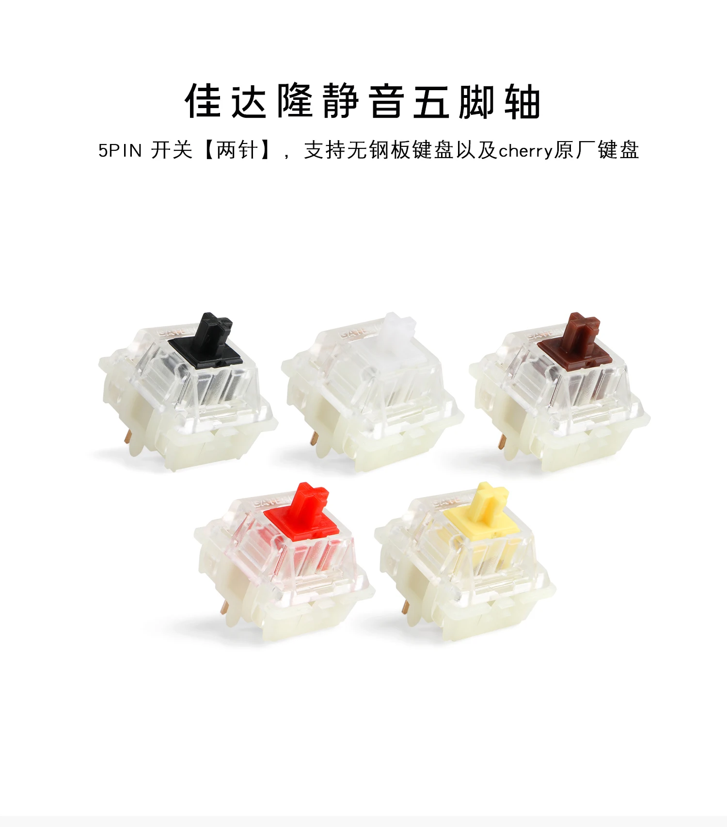 VENTA Interruptores silenciosos Gateron de 5 pines: negro/amarillo, Compatible con Cherry MX intercambiables en caliente para teclados para juegos/personalizados