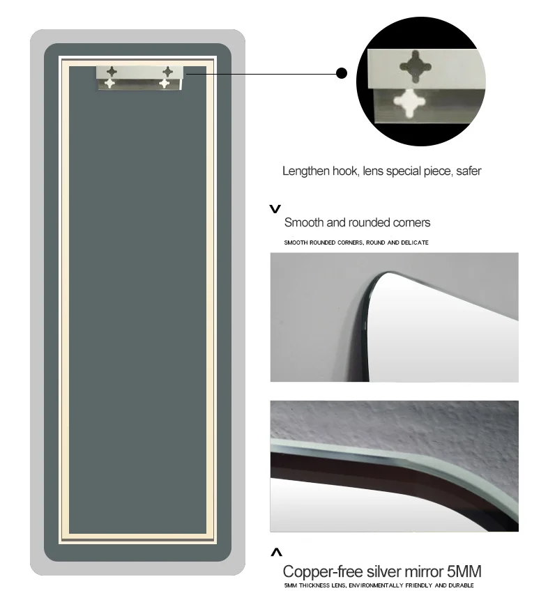 Interruptor táctil 3 colores de luces LED son opcionalesNombre del productoEspejo LED de longitud completa