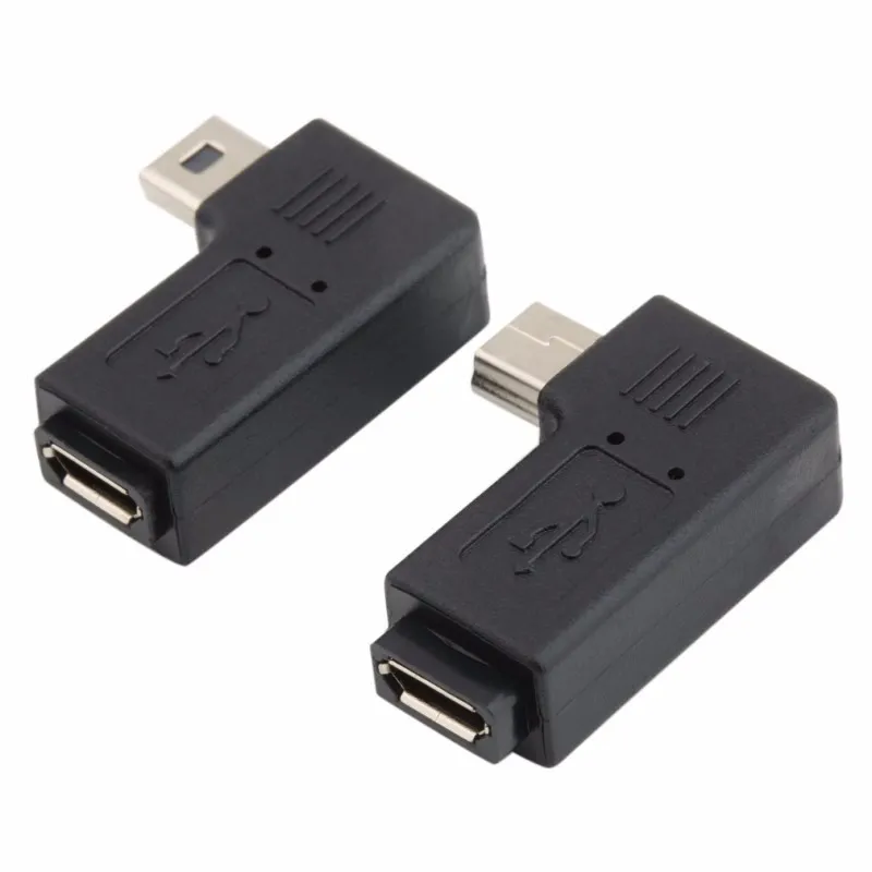 1 x USB Micro 5 pines hembra a Mini 5 pines macho izquierdo convertidor adaptador de 90 grados