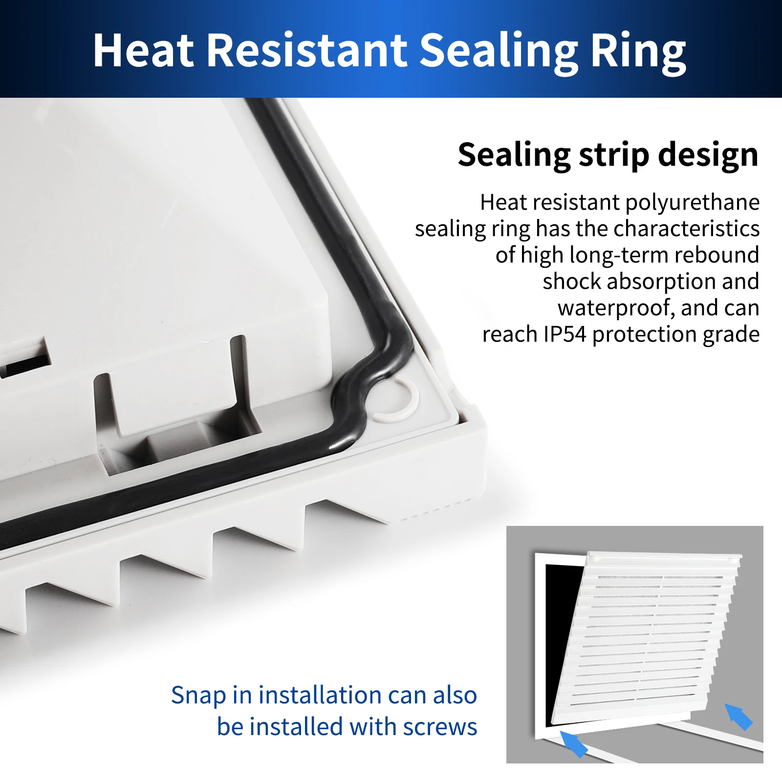 El polvo puede ser el peor enemigo de un sistema eléctrico, ya que tiene el potencial de reducir el rendimiento de refrigeración o causar daños cuando se queda demasiado acumulado.Proporcionamos filtros en la unidad, estos filtros proporcionan el máximo flujo de aire con un filtrado eficaz del polvo.Las unidades se pueden montar directamente en el ventilador o en un panel.