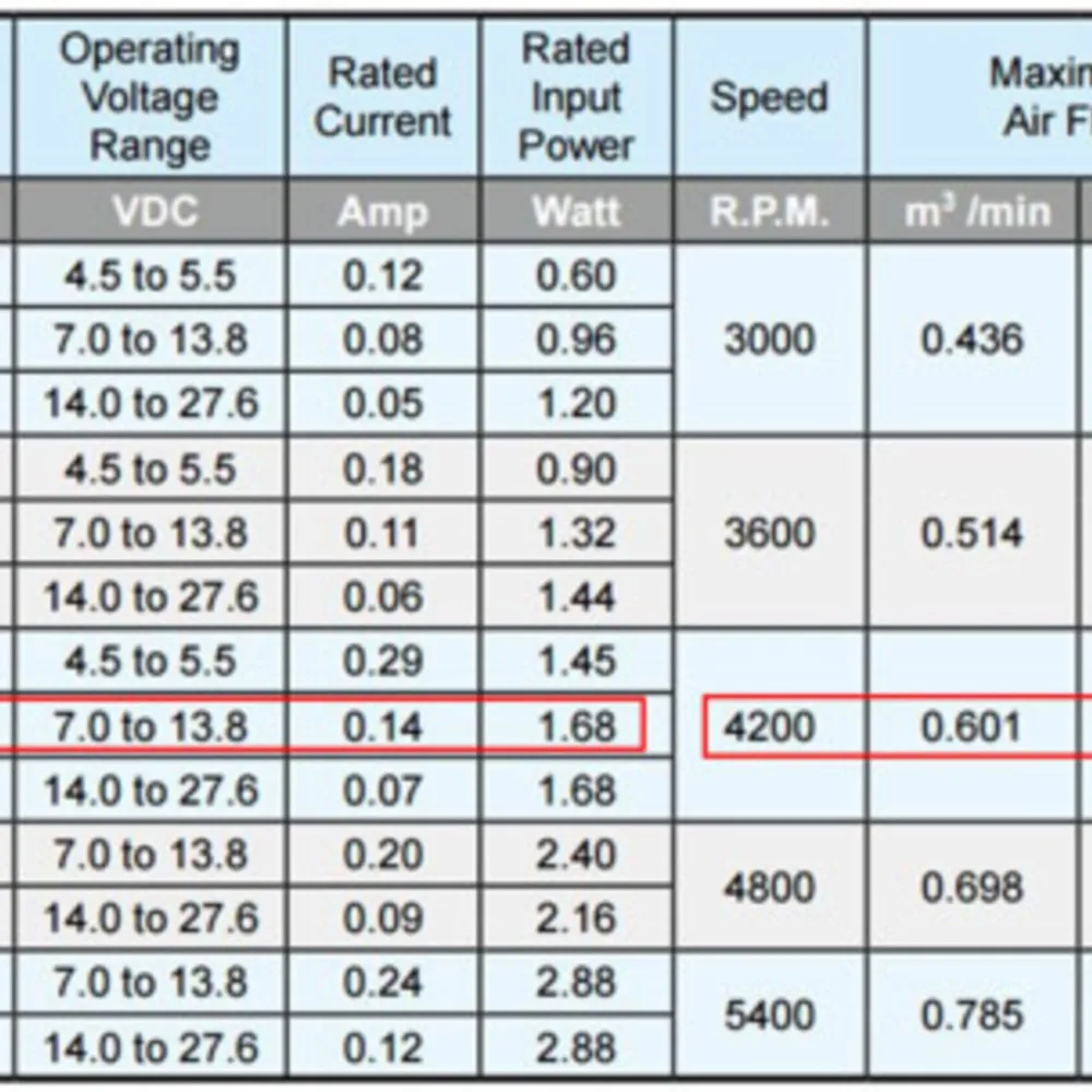 Product Description: The Delta AFB0612HC is a compact 60mm cooling fan designed for reliable heat dissipation in various electronics, including CPU and case cooling. Operating at 12V with a nominal current of 0.21A, this fan delivers an airflow of 21.22 CFM and a wind pressure of 0.163 in H2O (351.7 PA), ensuring efficient cooling performance. With a service life backed by its dual ball bearing design, it offers enhanced durability. This fan also supports speed measurement, making it ideal for systems requiring precise cooling control. Product Highlights: Size: 60x60x13mm, a compact size for small electronics. Voltage: 12V with low power consumption (1.68W). Airflow: 21.22 CFM and wind pressure of 0.163 in H2O for effective cooling. Durability: Dual ball bearings for extended lifespan and reduced friction. Speed Measurement: Supports RPM tracking for precise cooling control. Applications: Ideal for CPU, case cooling, and motherboard fans. Applications: This fan is perfect for cooling CPUs, servers, workstations, and electronic enclosures, ensuring efficient thermal management for high-performance devices. Its compact size and speed measurement make it suitable for customized cooling solutions in computing and other precision-engineered systems.
