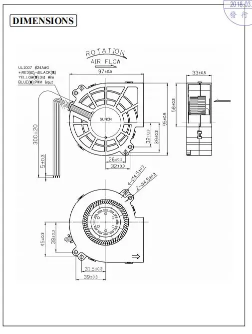 Comprar Ventilador 97mm PWM 9733 DC 12V 42,00W Original Sunon PF97331BX-B00C-S99 6800RPM Extractor de flujo de aire de alta velocidad