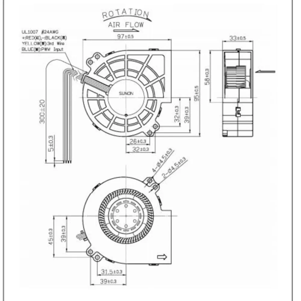 Comprar Ventilador 97mm PWM 9733 DC 12V 42,00W Original Sunon PF97331BX-B00C-S99 6800RPM Extractor de flujo de aire de alta velocidad