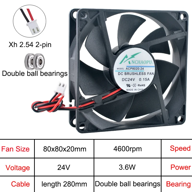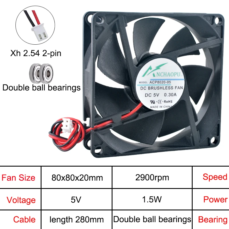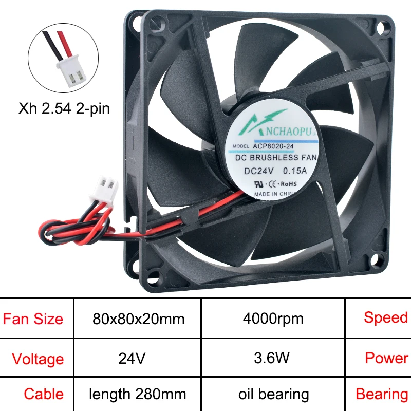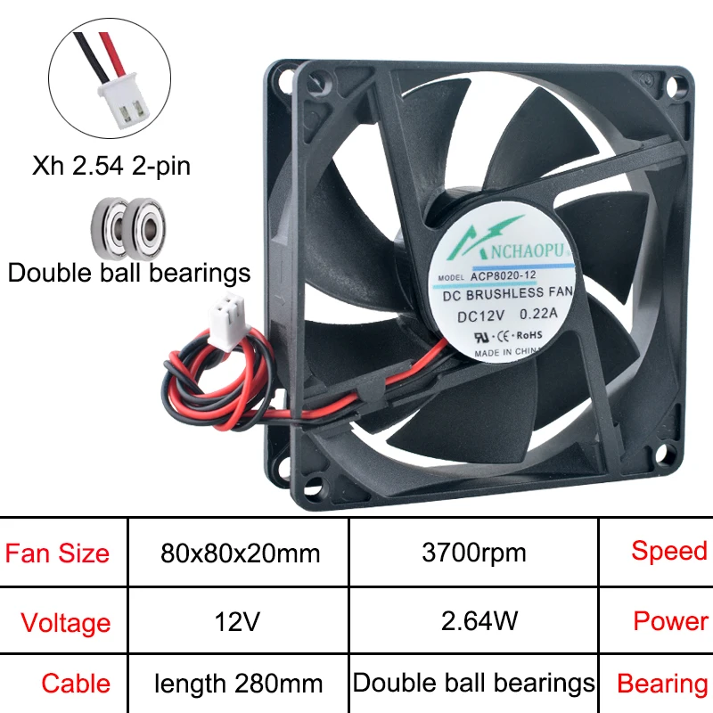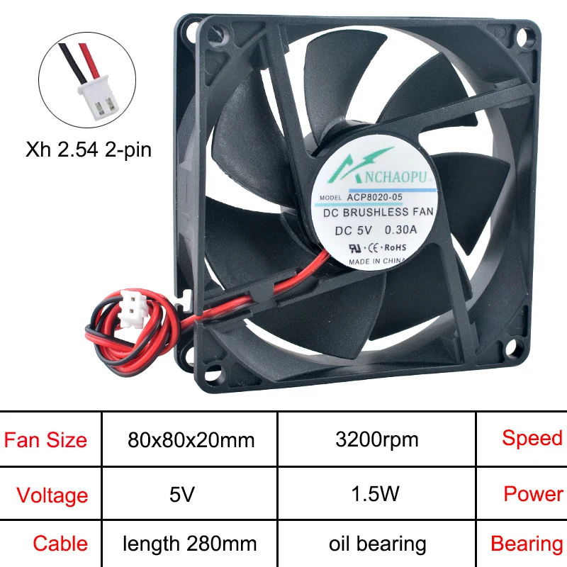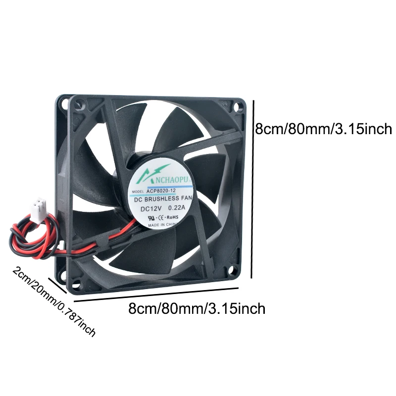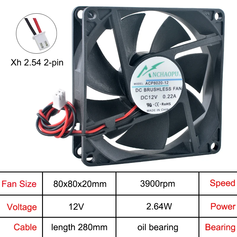 Comprar Ventilador ACP8020 de 80mm, ventilador de refrigeración de alta velocidad de 80x80x20mm, flujo Axial de 2 pines de 5V/12V/24V CC para refrigeración de fuente de alimentación del convertidor de frecuencia