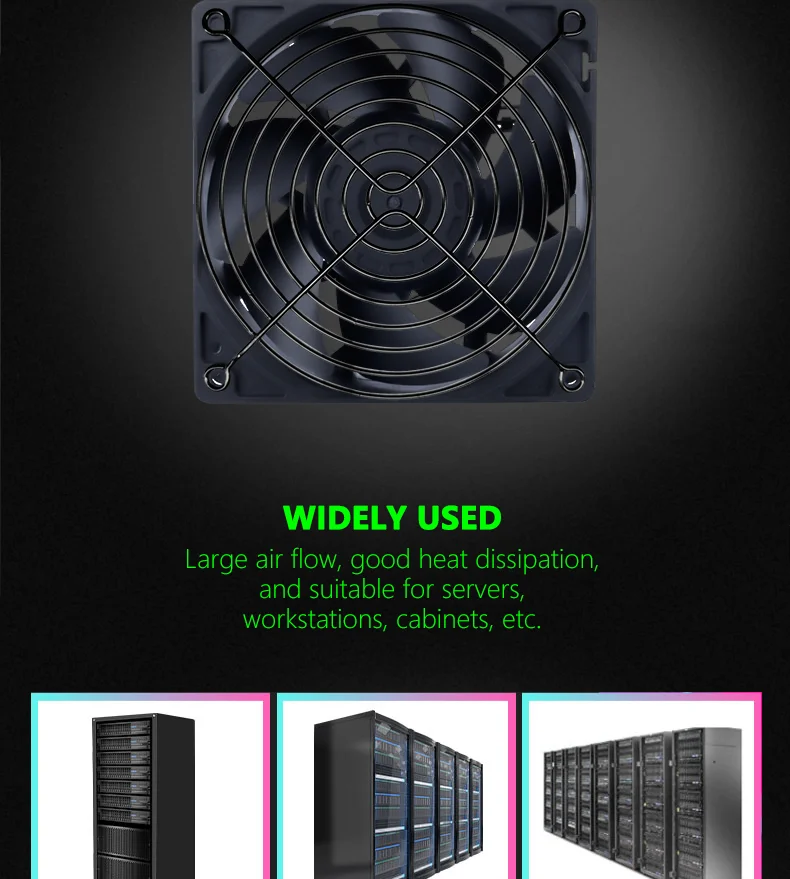 La velocidad de este ventilador es de hasta 3500 RPM, por lo que no se mide por el concepto silencioso de los ventiladores de computadora comunes. Generalmente se utiliza en entornos que requieren una fuerte disipación de calor como servidores, estaciones de trabajo, máquinas mineras, etc. Si es solo un usuario normal de bricolaje, ¡se recomienda comprar con precaución!