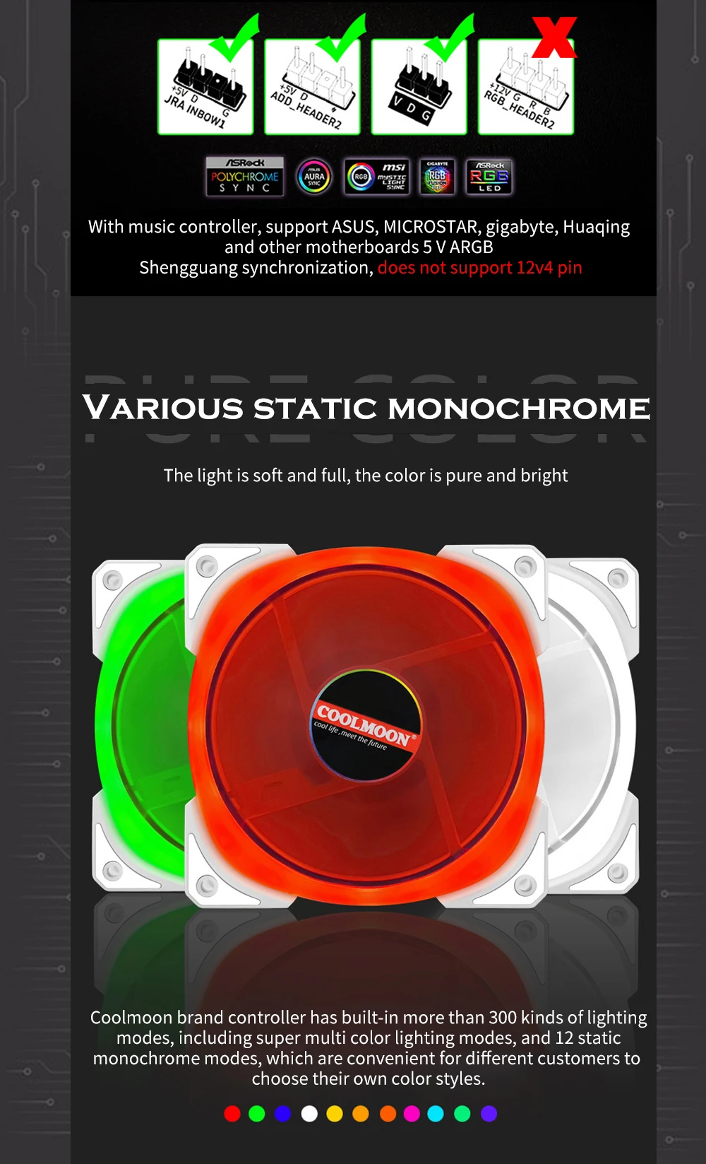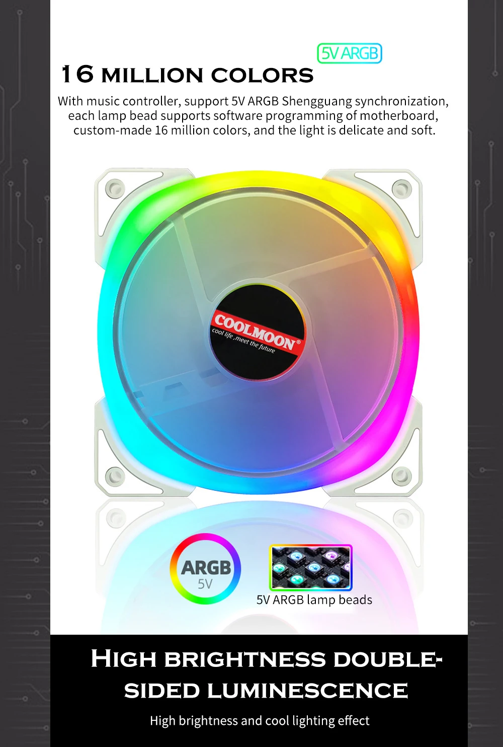 Comprar Ventilador ARGB para caja de ordenador, Enfriador de Chasis de 120mm, 5V, 3 pines, Control de ritmo musical, sincronización M/B, 5V, 3 pines para caja de gabinete DIY