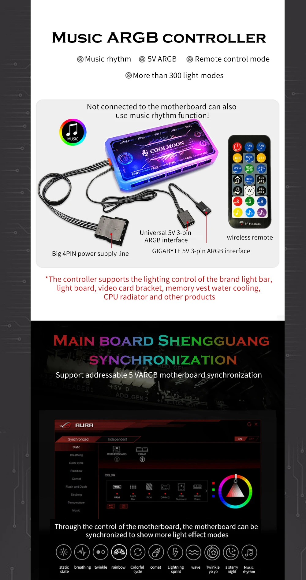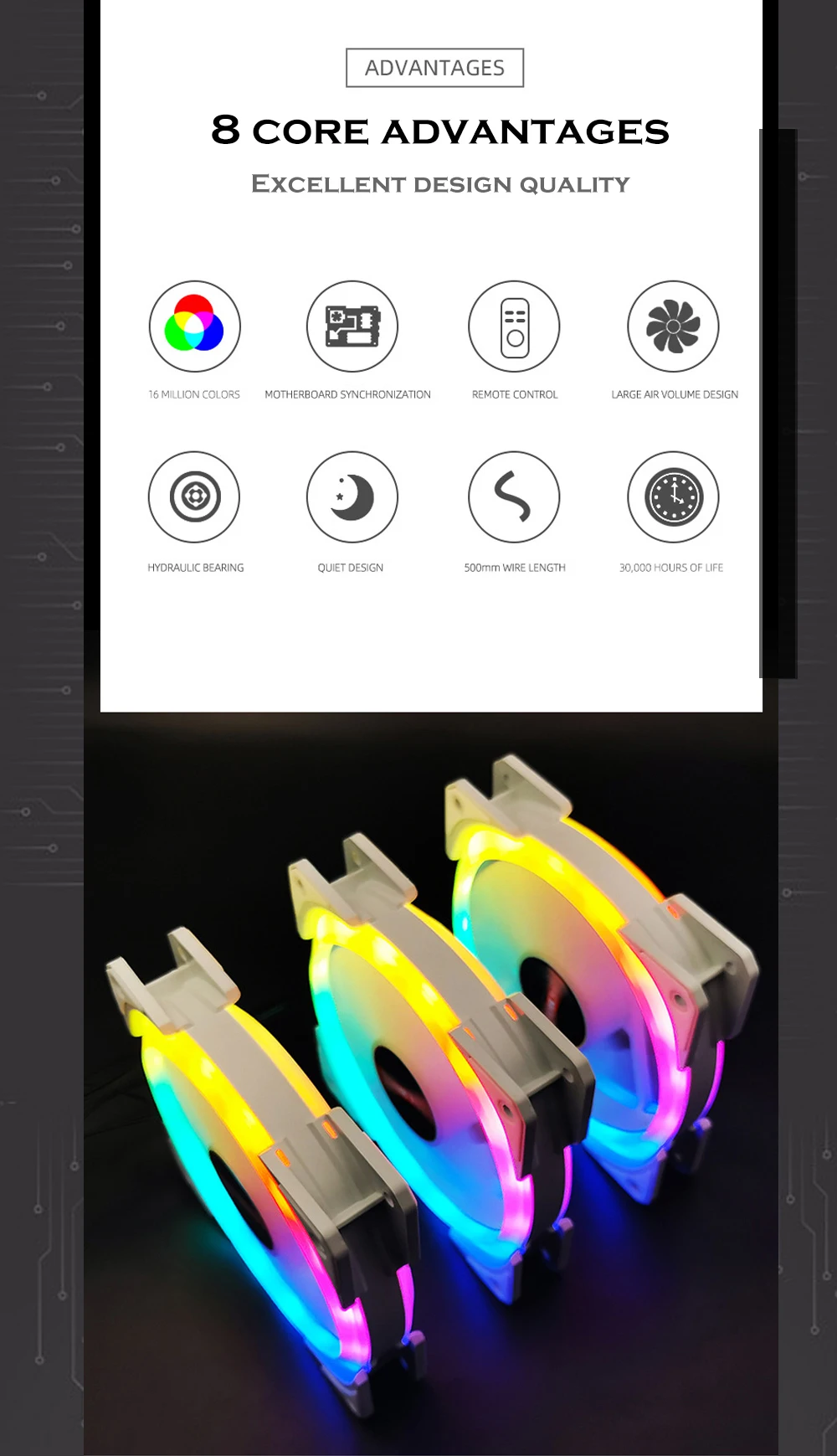 Ventilador ARGB para caja de ordenador, Enfriador de Chasis de 120mm, 5V, 3 pines, Control de ritmo musical, sincronización M/B, 5V, 3 pines para caja de gabinete DIY