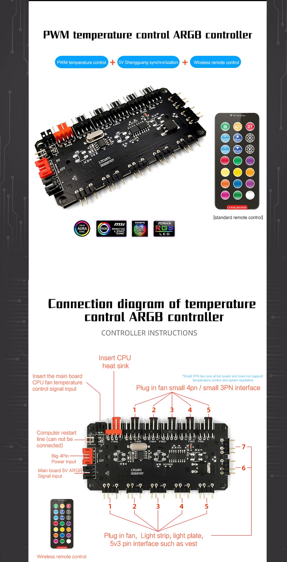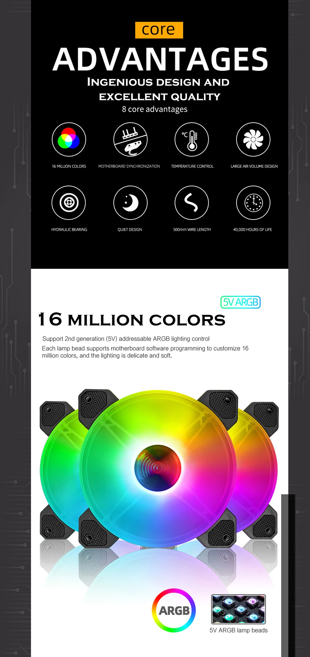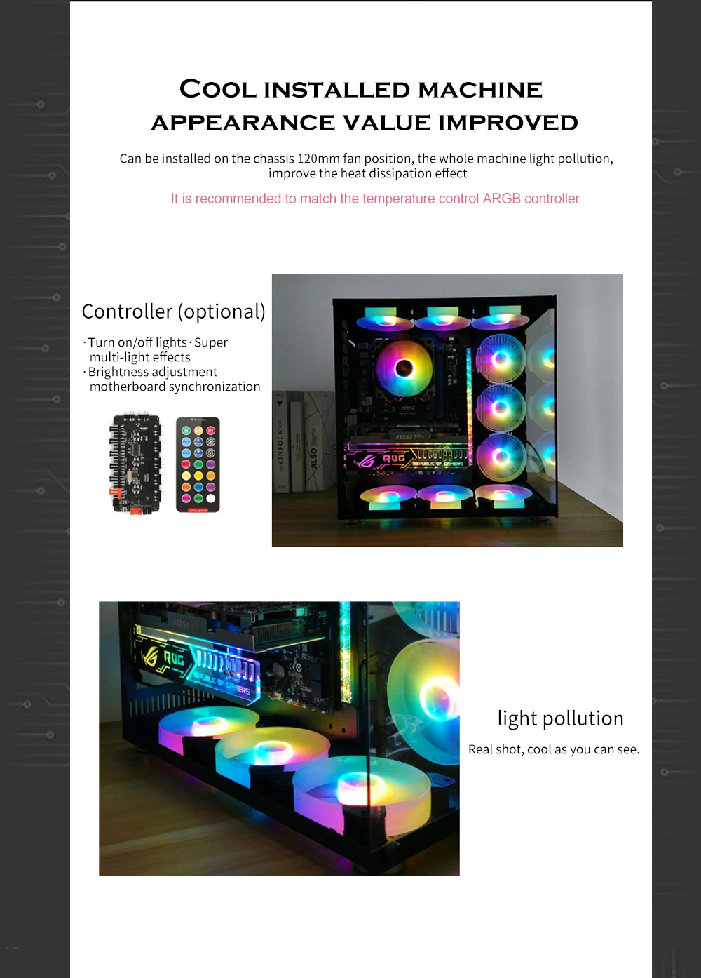 Comprar Ventilador ARGB PWM con carcasa de 120mm, Control inteligente de temperatura para carcasa de ordenador, 5V, sincronización M/B, ventilador de refrigeración de CPU, DRGB de 3 pines + PWM de 4 pines