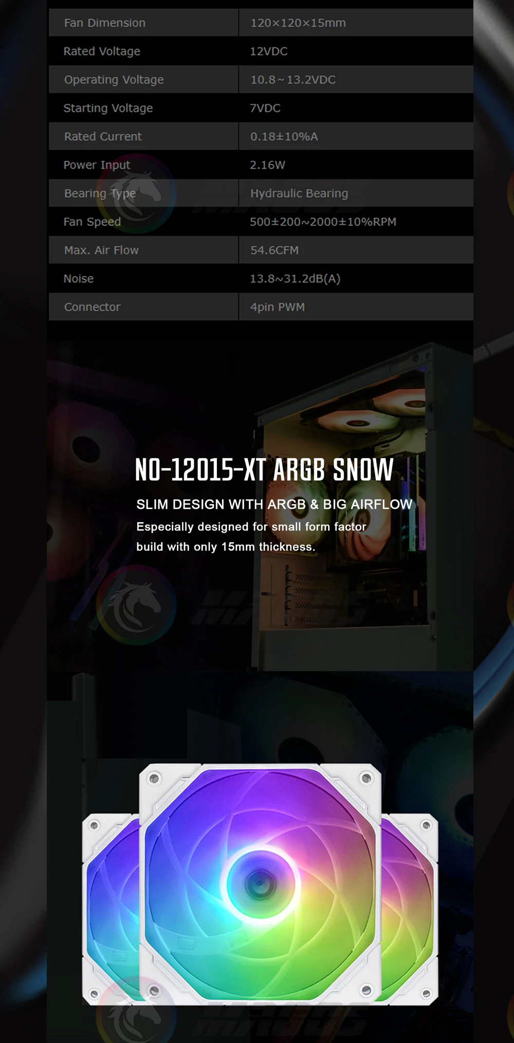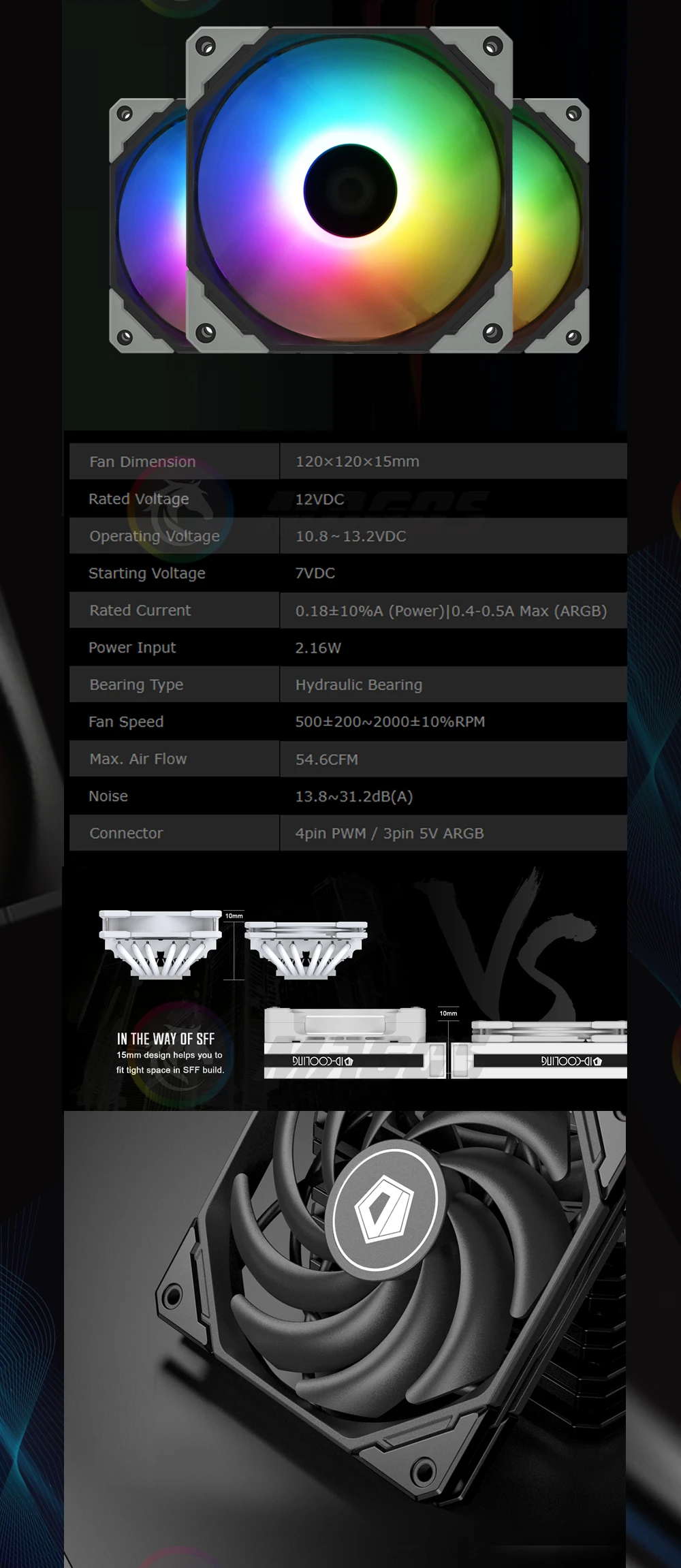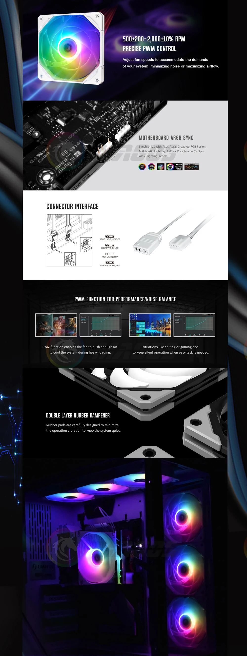 Comprar Ventilador con caja de 12 cm Ventilador enfriador de agua delgado de 15 mm 4 pines PWM Negro/Blanco 5 V ARGB MB SYNC 2000 Rpm