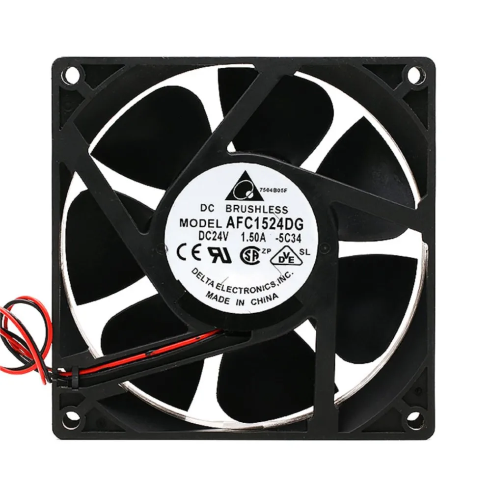 Model: AFC1524DG Size: 150mm x 150mm x 50mm (15cm x 15cm x 5cm) Rated Voltage: DC 24V Rated Current: 1.80A Speed: 4800 RPM ± 5% Max Airflow: 188 CFM Noise Level: 59 dB Key Features: High Airflow Capacity: With a maximum airflow of 188 CFM, the Delta AFC1524DG fan is designed to provide exceptional cooling performance for heavy-duty systems like inverter welding machines, ensuring optimal heat dissipation and preventing overheating. Powerful and Efficient: Operating at 24V with a current of 1.80A, this fan provides powerful performance while maintaining energy efficiency for long-term operation in industrial settings. Durable Construction: Built to last with a robust design, the fan is ideal for use in high-demand applications where reliability and durability are paramount. High-Speed Operation: The 4800 RPM rotational speed allows for rapid cooling, making it an excellent choice for cooling welding machines, electrical equipment, and other high-power devices. Moderate Noise Level: While the fan operates at a relatively high airflow, it maintains a noise level of 59 dB, which is acceptable for most industrial applications where ventilation and noise control are important. Applications: Inverter Welding Machines: Perfect for cooling inverter welding machines and other high-power equipment used in welding processes, preventing overheating and maintaining safe operational temperatures. Industrial Equipment: Ideal for large industrial systems, machinery, and equipment that require high airflow cooling, including inverters, power supplies, and other heavy-duty electronics. Electrical Cabinets and Control Panels: Excellent for use in cooling sensitive electronic components in control panels and cabinets in industrial or telecom environments, where high airflow is crucial.