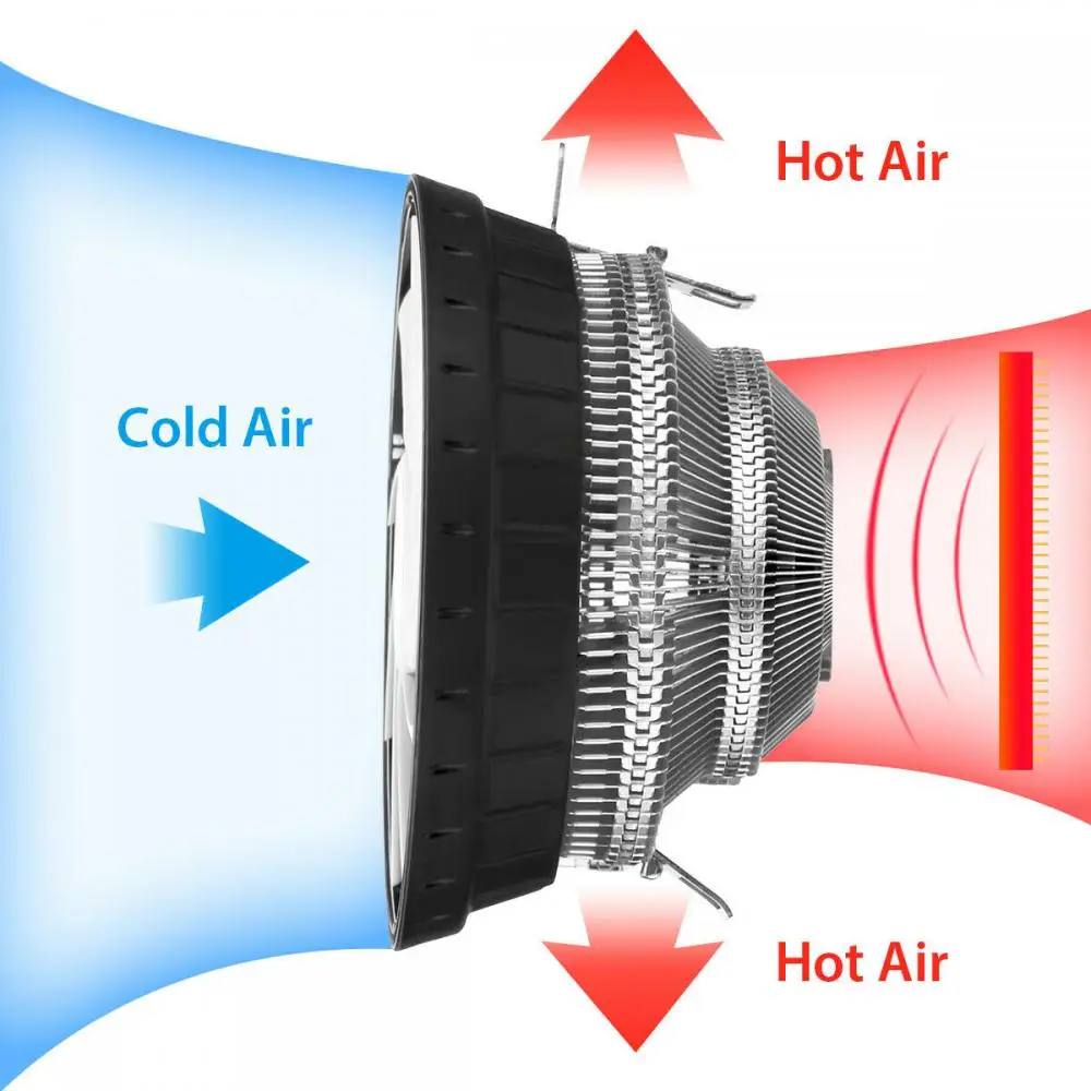 Permutaciones de aleta de aluminio y combinaciones de ciencia. El sistema de conductos de aire mejorado permite un flujo de aire más frío en el disipador térmico.