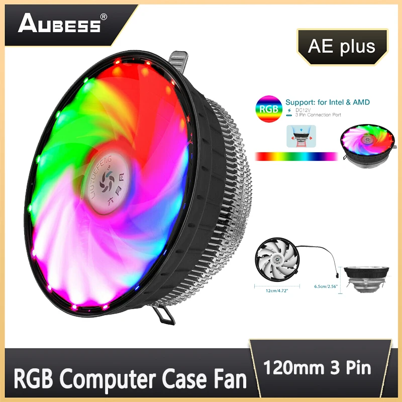 Comprar Ventilador de carcasa de ordenador RGB, disipador de calor de luz RGB de 120mm, 3 pines, 5 colores, LED, 12V, Enfriador de CPU, refrigeración de PC, controlador silencioso