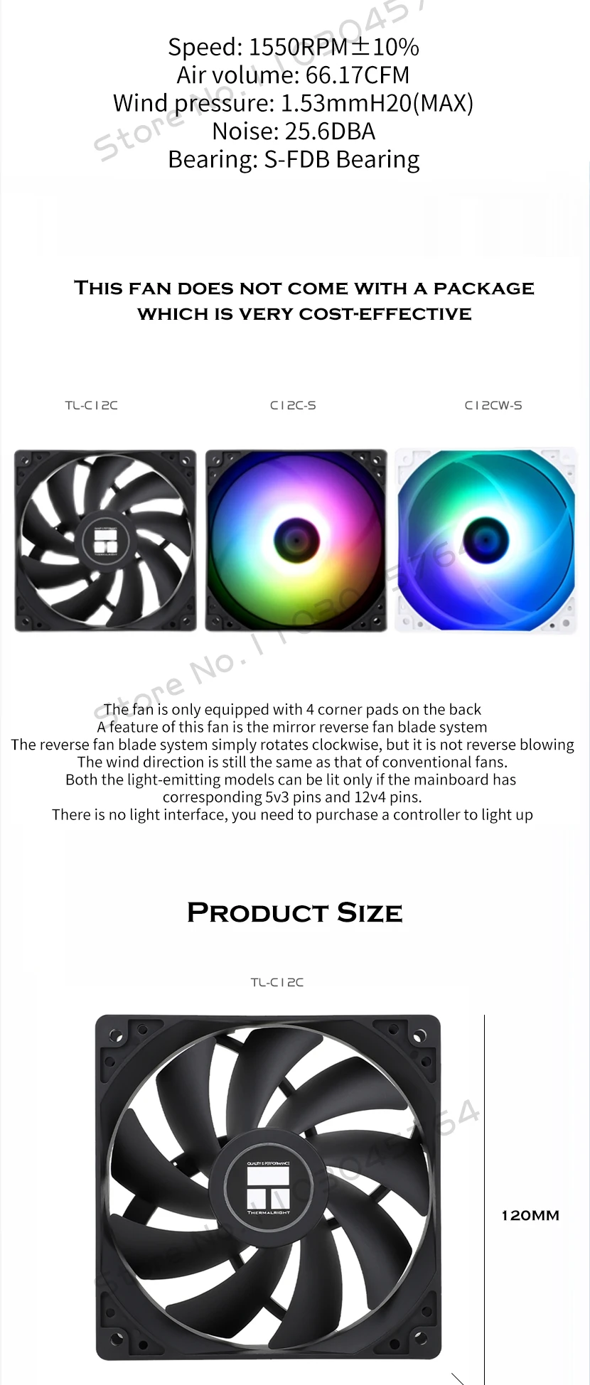 Ventilador de carcasa RGB 12025, Enfriador de CPU silencioso, cojinete de S-FDB, 12CM, 5V, 0-1550 RPM, TL-C12CW-S negro/blanco silencioso