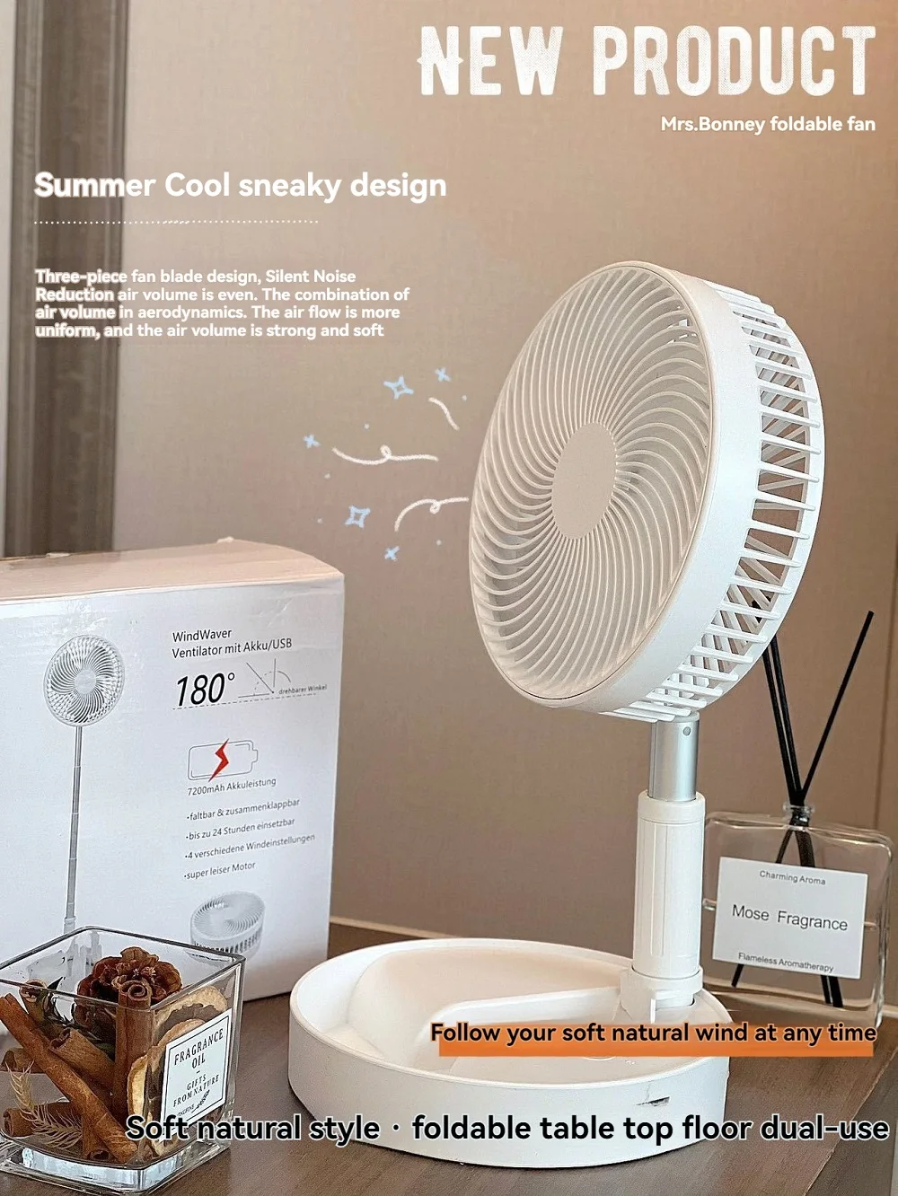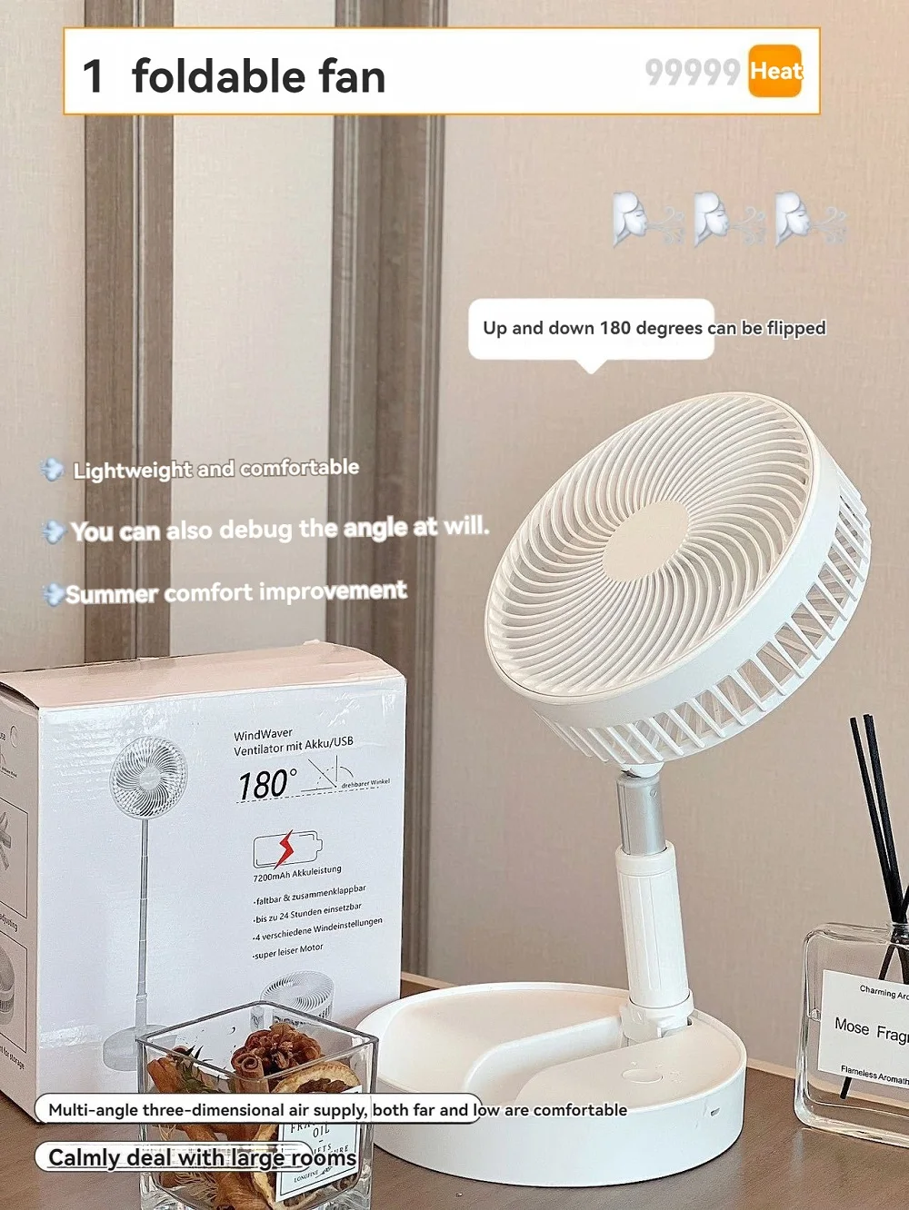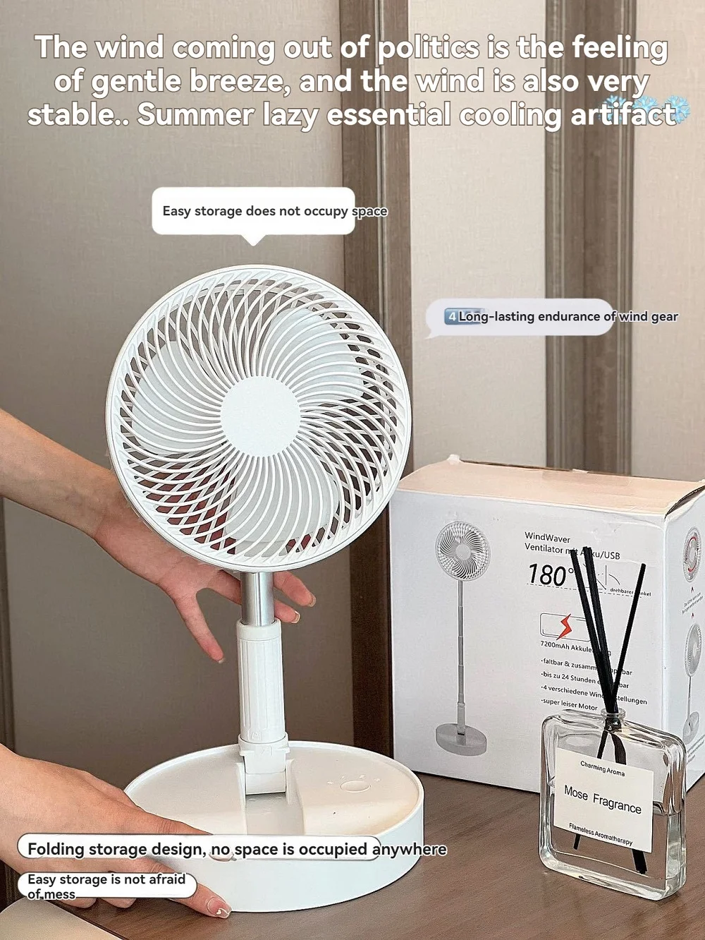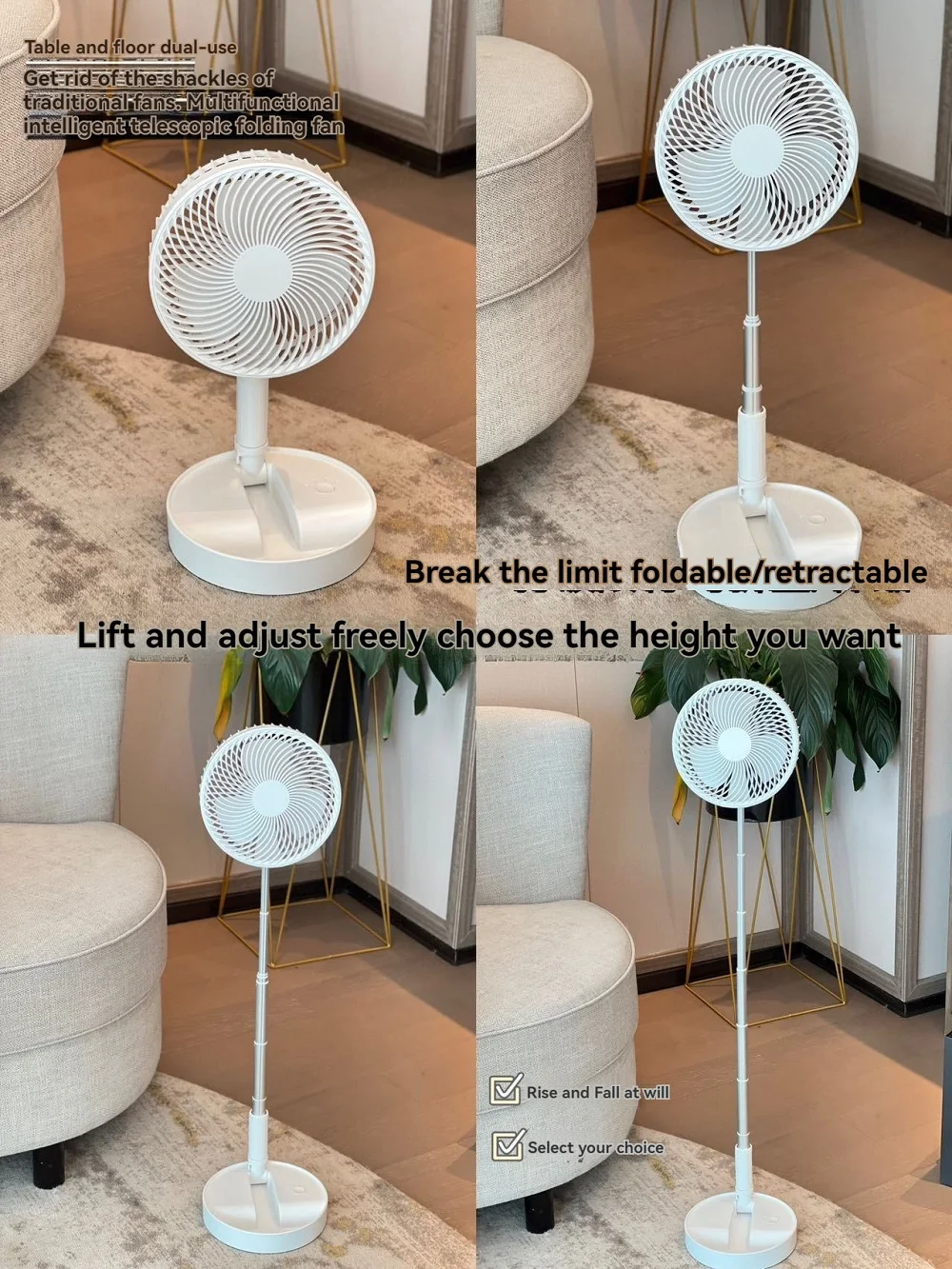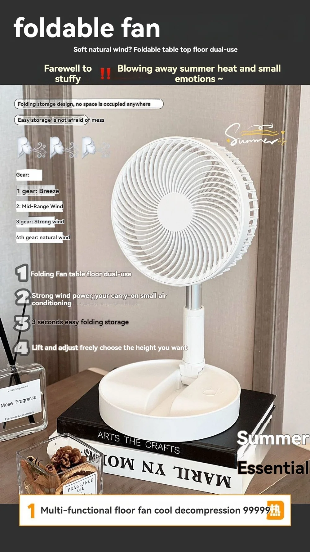 Comprar Ventilador de carga de elevación silencioso, ventilador eléctrico de pie plegable para encimera y suelo, cómodo y portátil, novedad de verano, 2024
