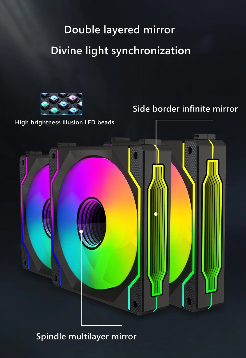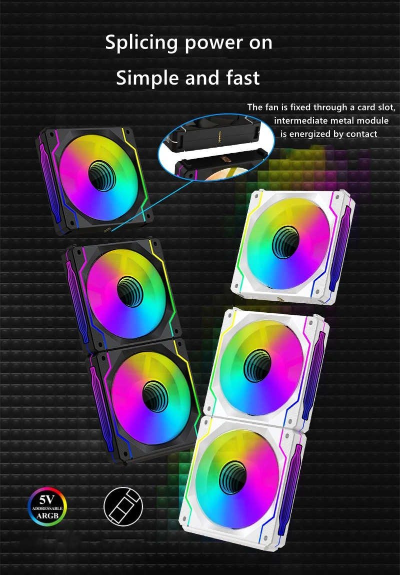 Comprar Ventilador de chasis de espejo de bloque de construcción, Control PWM, 5V, 3 pines, ARGB, Divine, 12cm, disipador de calor silencioso, AURA SYNC, 4 pines, carcasa de PC, refrigeración por agua