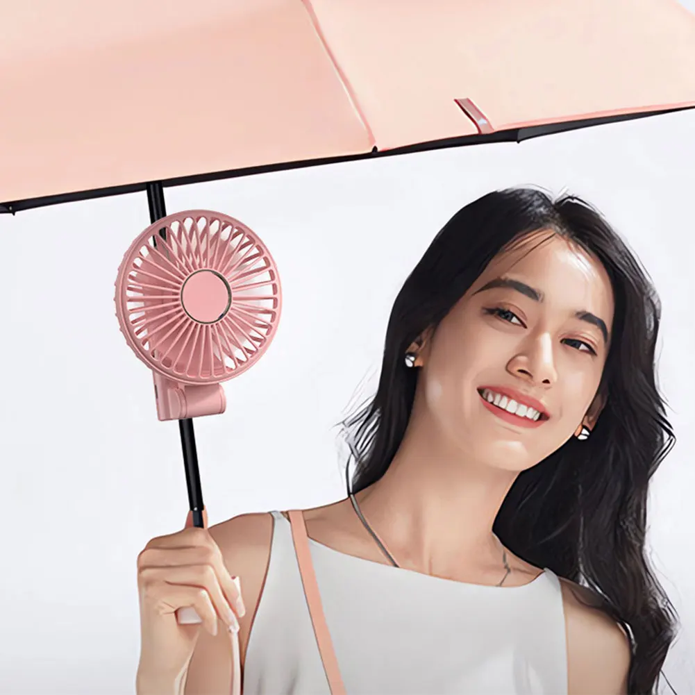 Ventilador portátil de mano, ventilador de refrigeración de verano con ajuste de 3 velocidades, ventilador personal eléctrico recargable para paraguas al aire libre