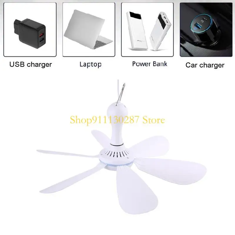 Pequeño ventilador de techo ideal para el verano caluroso y los días sin viento, también para dormitorios o tiendas de campaña al aire libre.