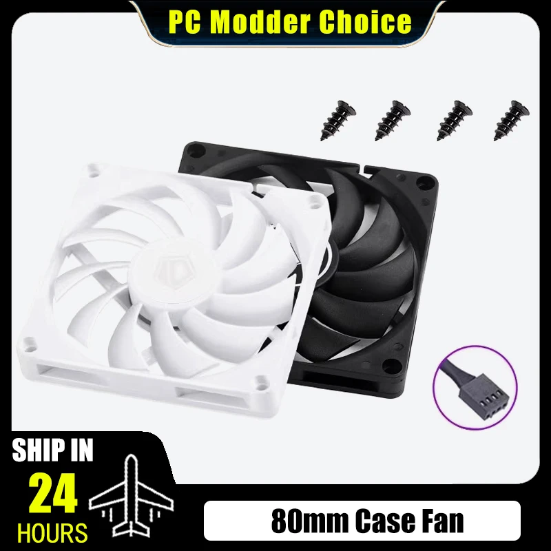 Ventilador para cubierta de computadora 8 cm 8010 4 pines PWM Samrt Control 80x80x10 mm Ventilador enfriador de CPU para chasis, 14-25dBA Ultra silencioso, negro/blanco