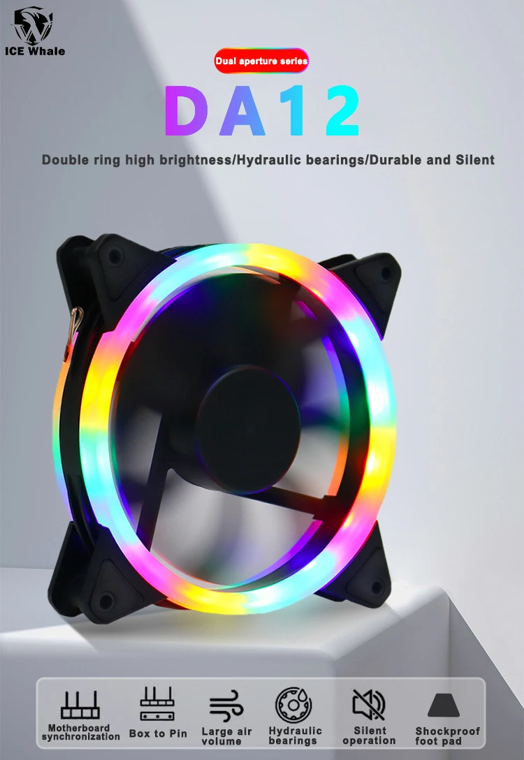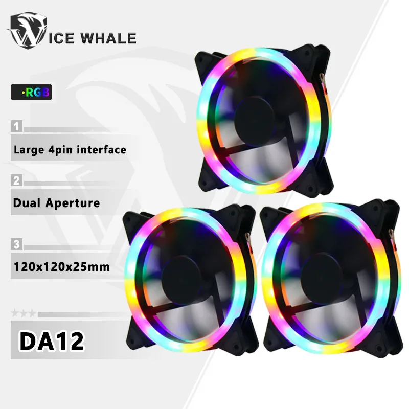 Ventilador con cubierta de PC ICE Whale DA12 Rgb Ventoinha silencioso 120mm ventilador con cubierta de ordenador grande enfriador de agua de 4 pines Ventilador de refrigeración de CPU