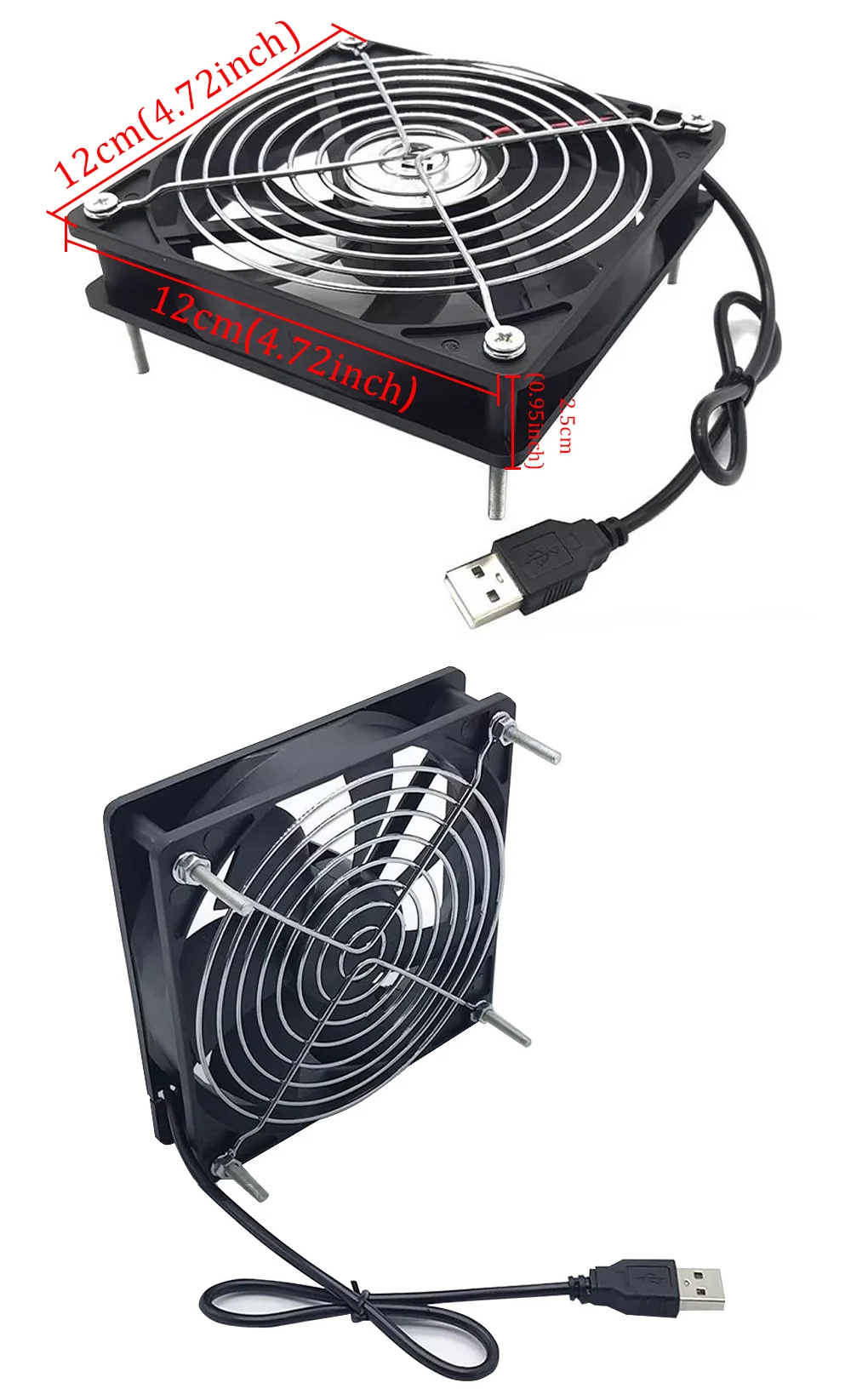 Ventiladores USB diseñados para enfriar diversos componentes electrónicos, como TV box, receptor AV, DVR, enrutador, módem, xbox, playstation, microcomputadora, grabadora de sobrevivencia, mini PC, puerta de enlace de Internet para el hogar móvil T y otros dispositivos electrónicos de ayuda de audio.