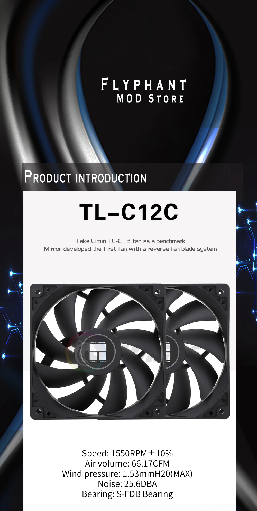 Ventilador con cubierta de PC Thermalright Argb120, ventilador de refrigeración PWM con Control de temperatura 12 cm TL-C12C C12C-S C12CW-S