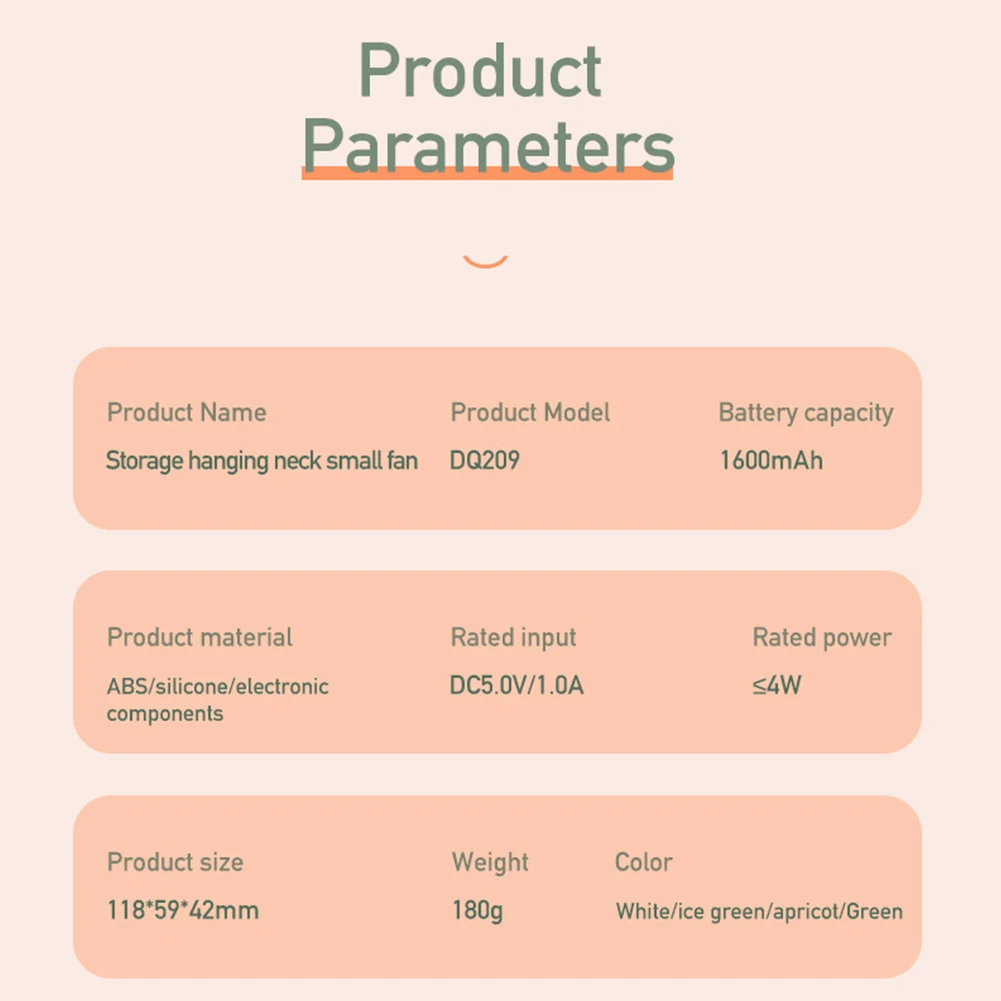3 engranajes ajustables 1600mAh USB recargable portátil refrigeración de aire de verano ventilador de cuello colgante sin hojas deportes al aire libre viajes personales usable aromaterapia ventiladores Característica: 1: la manguera se puede almacenar, es compacta y portátil; 2: Batería de polímero de litio, más segura; 3: motor sin escobillas, viento fuerte; 4: funcionamiento con una sola tecla, volumen de aire ajustable de 3 velocidades; 5: Función de aromaterapia, se pueden agregar aceites esenciales a la entrada de aire; 6: Apariencia Simple, combinación de colores simple y elegante; Especificación: Nombre del producto: ventilador de cuello colgante de almacenamiento Color del producto: verde/gris Tamaño del producto: x 59x4 2mm/X pulgadas Tamaño de la caja de Color: x 65x7mm/X pulgadas Peso del producto (metal desnudo): 177g Peso del producto (incluido el embalaje): 230g Embalaje: Caja de color fino Entrada nominal: V CC/A Corriente de funcionamiento: 0,25-0.9A Potencia nominal: ≤ 4W Capacidad de la batería: 1600mAh Tiempo de uso de la batería: aproximadamente 6 horas para la primera marcha, aproximadamente 3 horas para la segunda marcha, 1,5 horas para la tercera marcha Tiempo de carga: alrededor de 3 horas Material del producto: ABS/silicona/componentes electrónicos Producto de instrucciones: Función de ventilador: Presione el interruptor una vez para iniciar la primera marcha; Presione el segundo interruptor para iniciar la segunda marcha; Presione el tercer interruptor para iniciar la tercera marcha; pulsa el cuarto interruptor para apagar la alimentación. El ciclo Descripción del indicador: el indicador de estado de funcionamiento del ventilador es azul, el indicador de estado de carga es rojo y el indicador de carga completa es verde. Nota: Debido a la diferencia del monitor y efecto de la luz, el color real del artículo puede ser ligeramente diferente al color mostrado en las imágenes. ¡Gracias! Permita una desviación de medición de 1-2cm debido a la medición manual. 1 * ventilador de cuello colgante 1 * cable de carga tipo C 1 * manual en chino e inglés ![]() ![]() ![]() ![]() ![]() ![]() ![]() ![]() ![]() ![]() ![]() ![]() ![]() ![]() ![]() ![]() ![]() ![]() ![]()