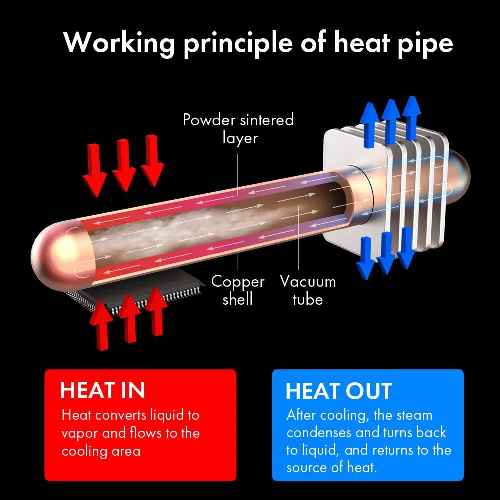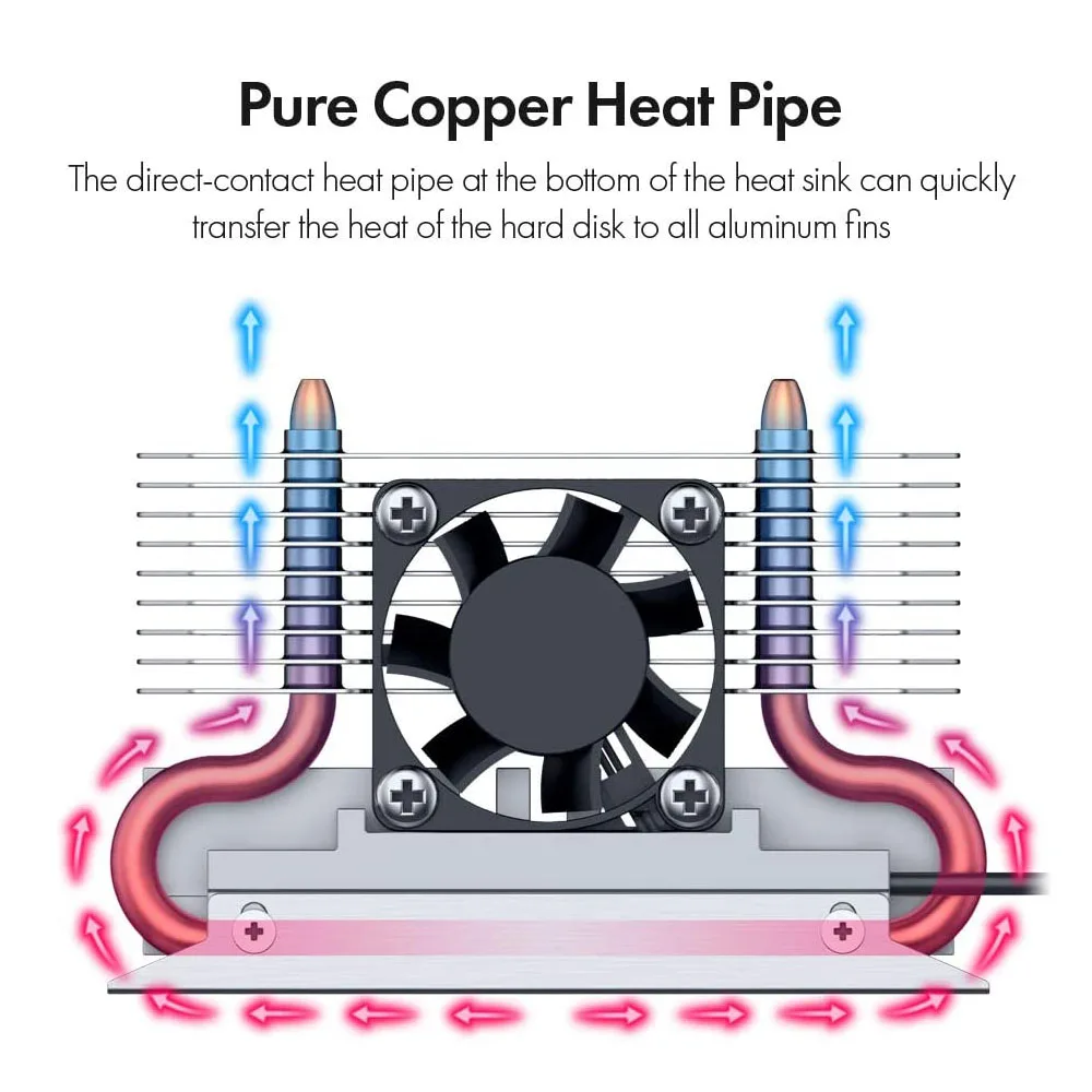 El potente enfriador M.2 NVMe 2280 SSD viene con 4 tubos de calor de cobre puro y ventilador PWM de 30mm para garantizar una excelente transferencia de calor desde M.2 NVMe 2280 SSD.