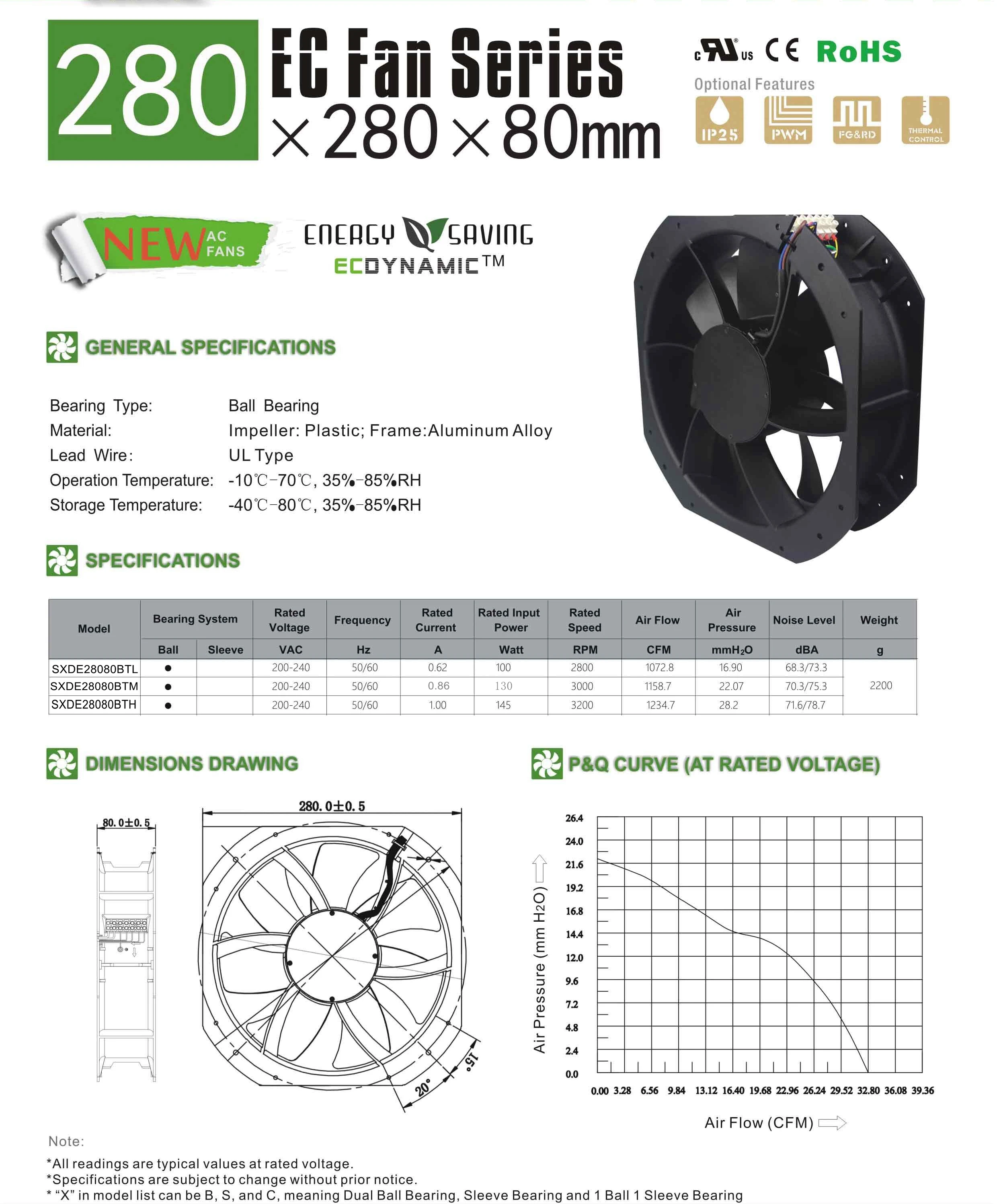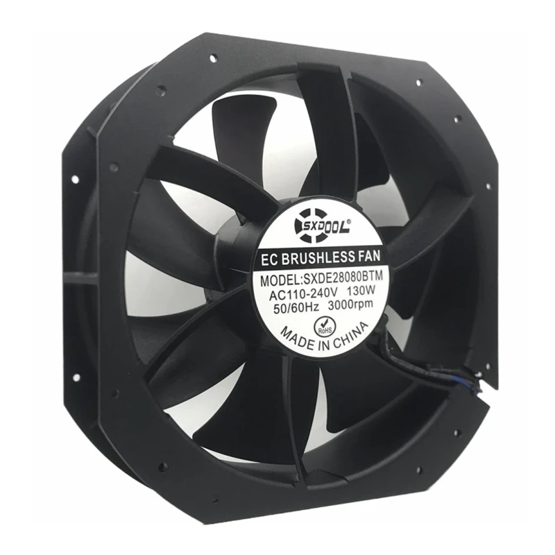 Comprar Ventilador EC motor AC 280mm 1150CFM AC 110-240V doble rodamiento de bolas ahorro de energía solo 130W ventilador de refrigeración del Gabinete 280*80mm