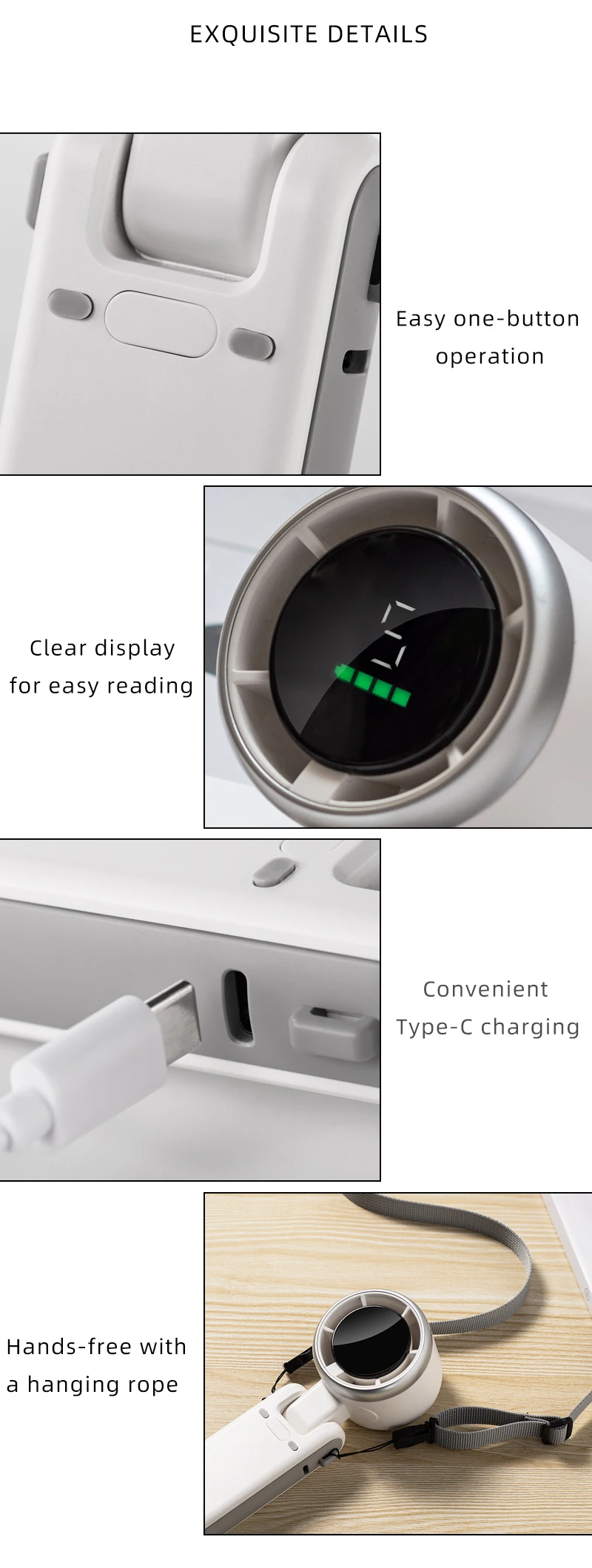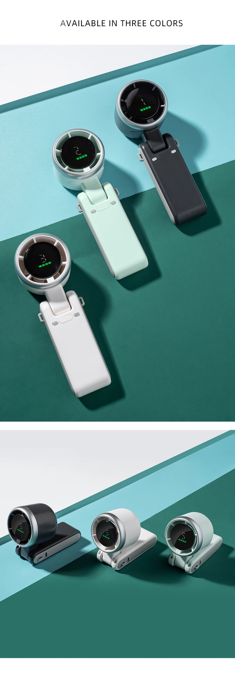 【Pantalla digital-Recordatorio de energía】 Este ventilador portátil para viajes está equipado con una pantalla de visualización digital de alta definición, que puede mostrar la velocidad actual del viento y la energía restante de la batería, para que ya no tenga que preocuparse por la energía restante del ventilador. Cuando la batería de este mini ventilador esté baja, puede organizar la carga por adelantado, asegurando un compañero genial en cada viaje.