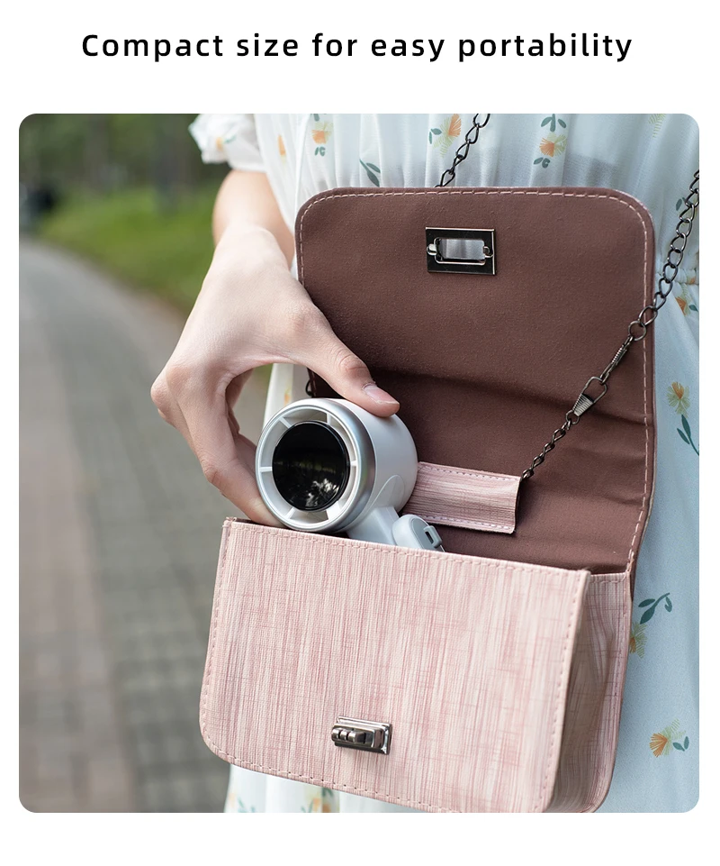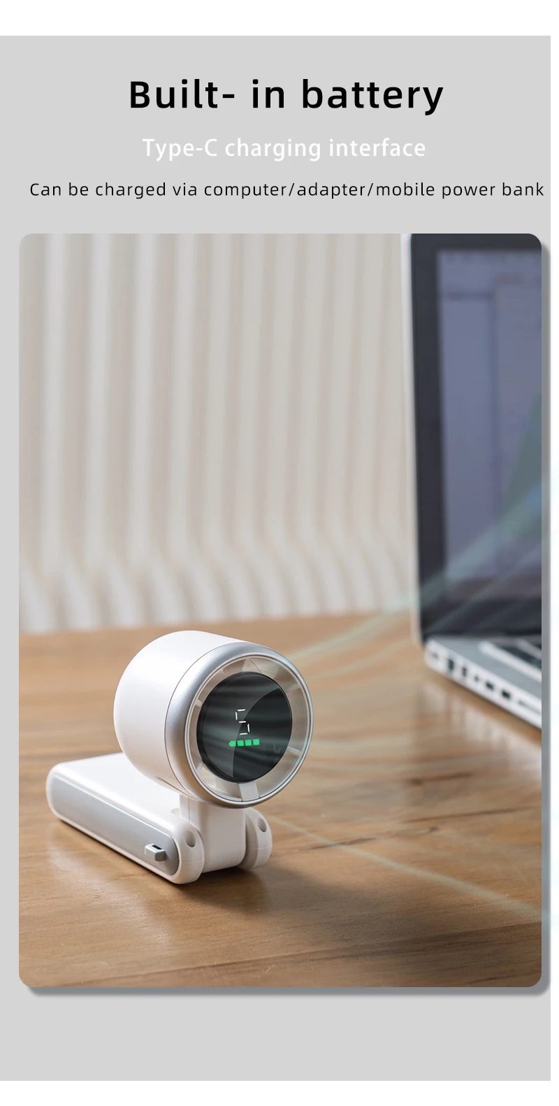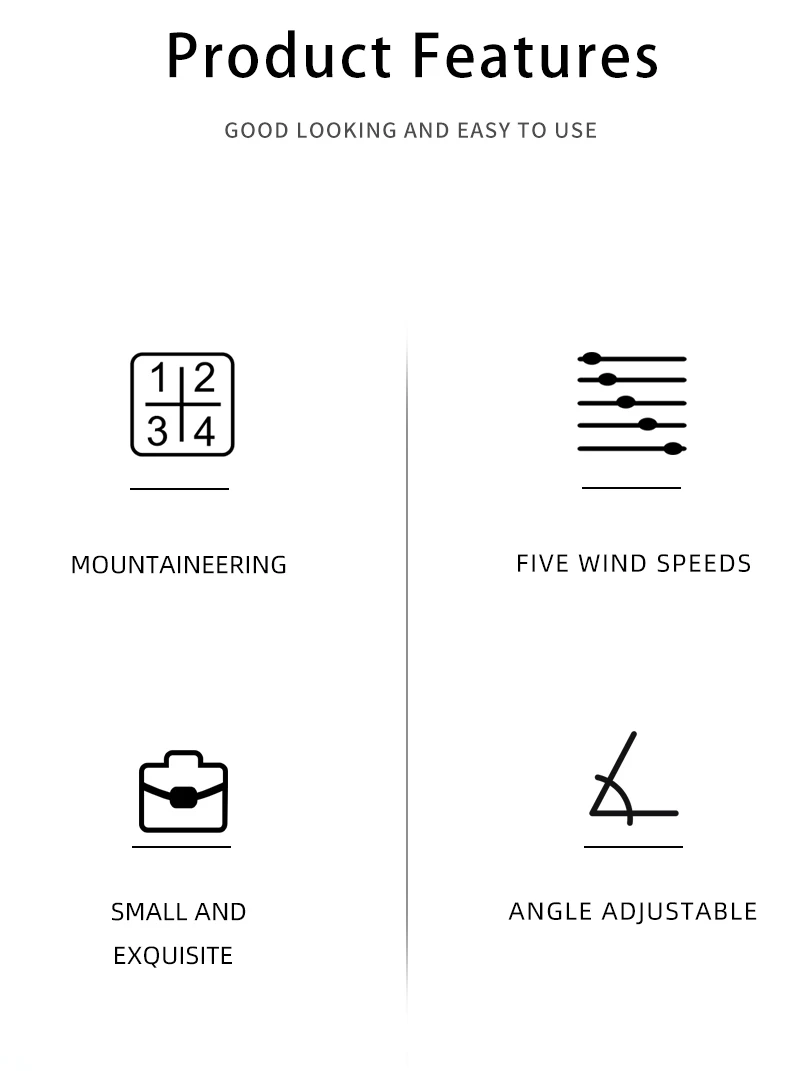 【Interruptor de botón-Velocidad del viento personalizable】Este pequeño ventilador adopta un diseño de interruptor de botón, y la velocidad del viento se puede ajustar continuamente. El ventilador portátil puede personalizar velocidades de 1 a 5, satisfaciendo sus diversas necesidades de energía eólica en cualquier escena.