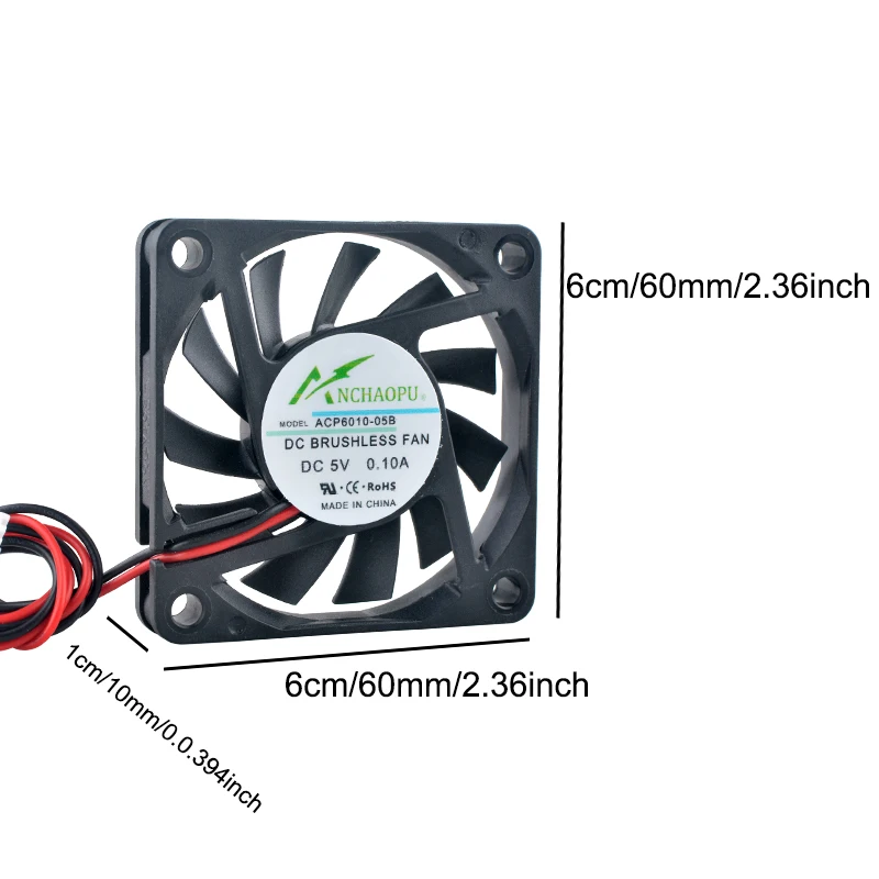 Comprar Ventilador de flujo Axial ultrafino ACP6010 de 6cm y 60mm, ventilador de refrigeración de 2 pines para fuente de alimentación del cargador DC5V 12V 24V 60x60x10mm