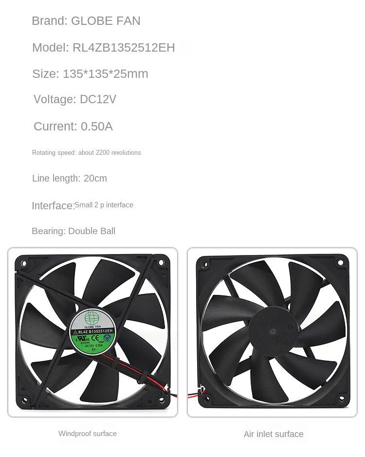 Comprar Ventilador Globe RL4Z B1352512EH, 12V, 0.5A, 13,5 cm, fuente de alimentación de carcasa de PC