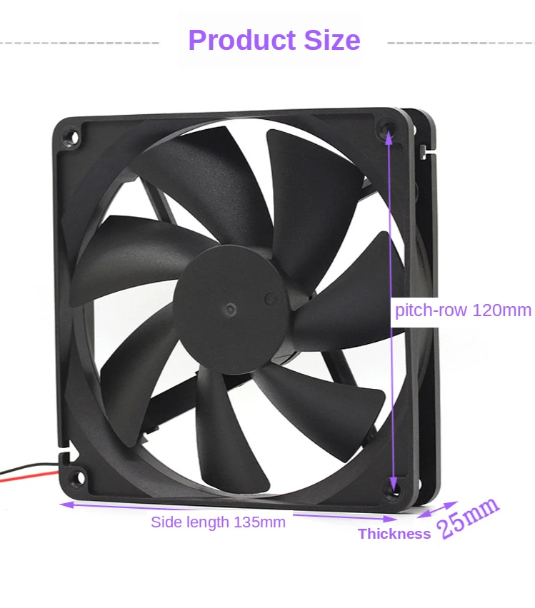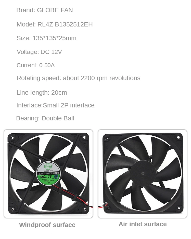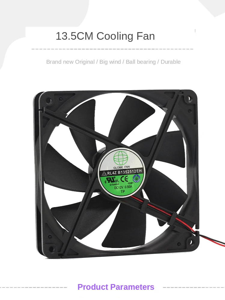 Comprar Ventilador de globo RL4Z B1352512EH, 12V, 0.5A, 13,5 cm, fuente de alimentación de carcasa de PC, Enfriador de 135mm, 135x135x25mm